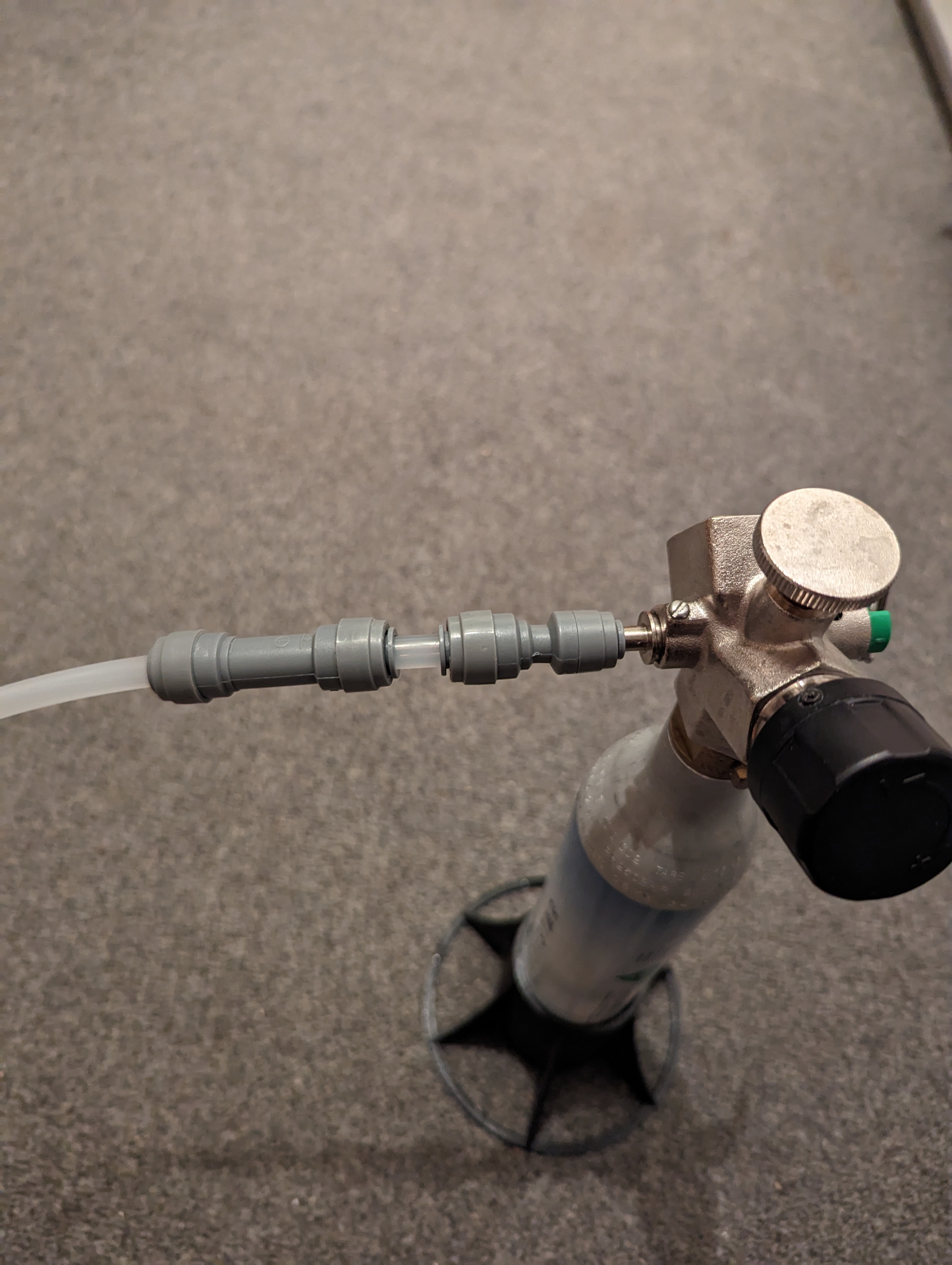 Am besten kaufst du für den Abfüller die Push-in fittings, dann brauchst du noch den Schlauch und die Ball-Lock Anschlüsse.