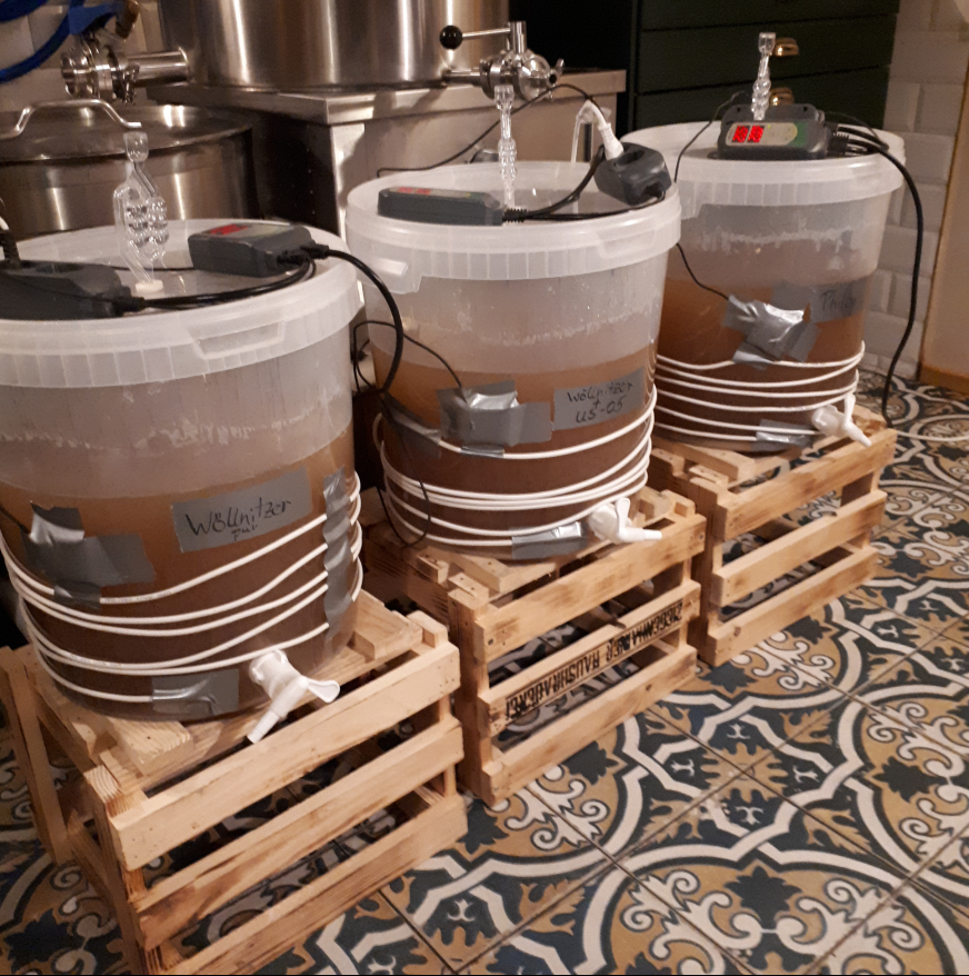 Der Sud wurde dann in 3 x 20 Liter aufgeteilt und bei 20°C angestellt mit