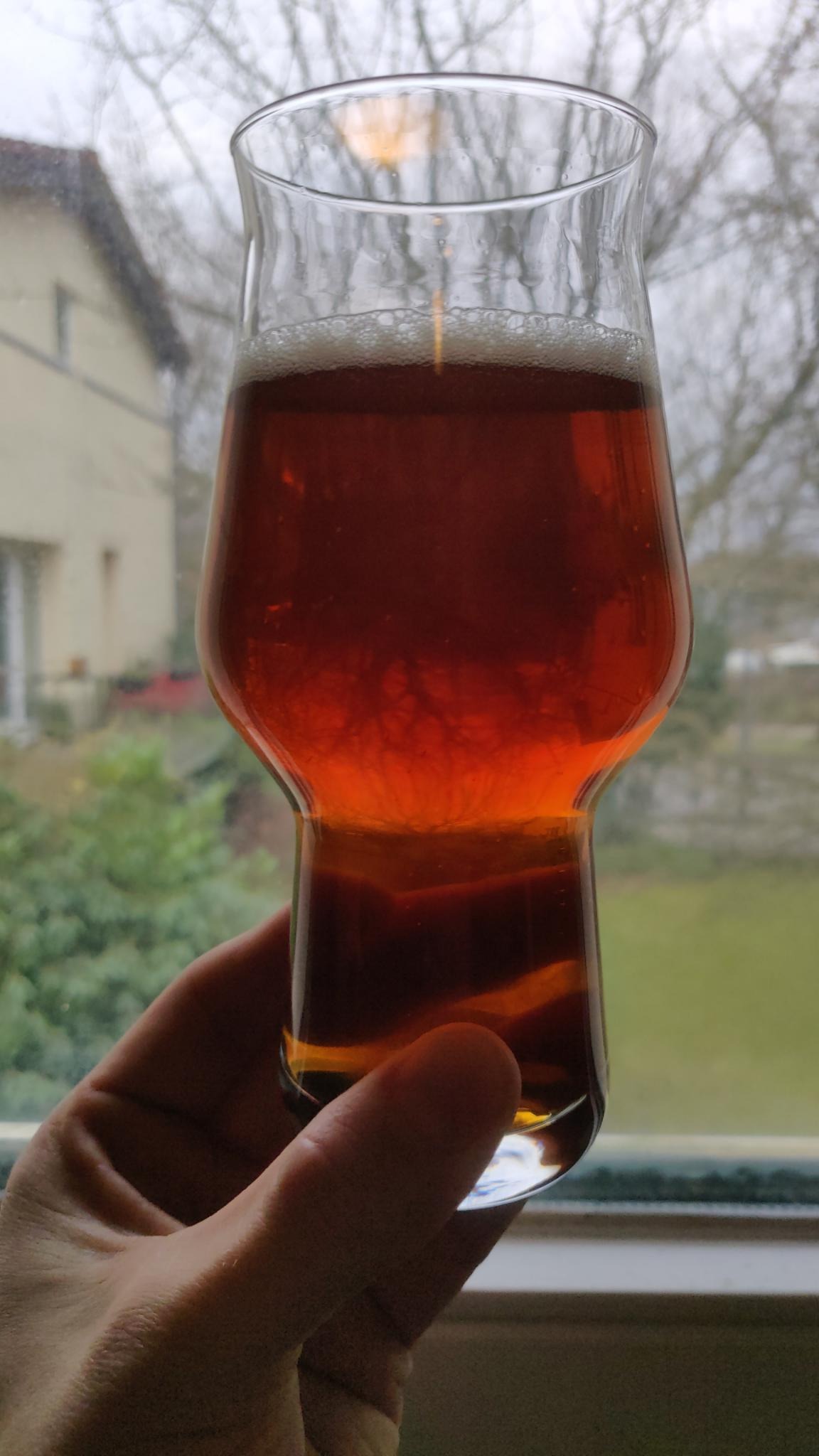 Endlich mal wieder ein Bier wie ich es mir vorgestellt habe, britsh strong ale, das erste dieser Saison, gebraut am 28.12. mit der WY1084 (also eigentlich ein 'irish' strong ale), etwas O-Schalen, Zimt und Candysirup, Süße ist jetzt weg, trocken und feinmalzig, überhaupt nicht sprittig, auch nicht wärmend, sondern eher mild, zitrusig (Hopfen) und smoothes mouthgehfühl