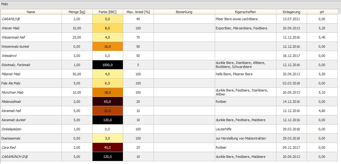 Du hast ja auch sehr viele 0.0 ph-Werte in deinem Malzlager. Du musst alle Malze korrekt eintragen, wenn Du in der Wasseraufbereitung mit Malz ph arbeiten willst.