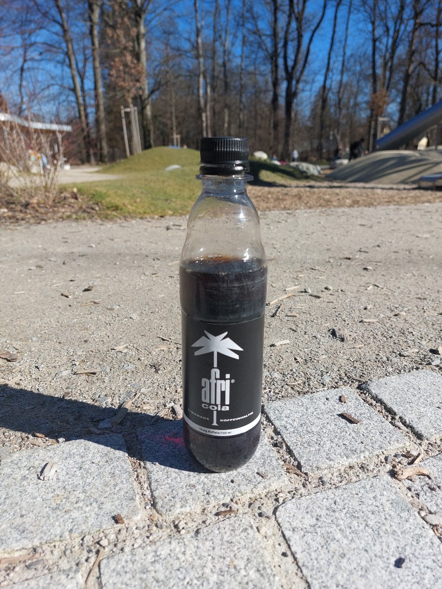 Bei mir war es ungefähr 12:10 als ich eine Flasche afri trank. Ich muss dankbar sein dass eine Kollegin noch die letzte Kiste mit s.g. Automatenflaschen 0,2l aus dem Getränkemarkt in Nienburg schleppen konnte, und nur für mich. Eine andere Kollegin glaubt, mir diese kleinen Flaschen ebenfalls beschaffen zu können, bislang hat sie als Anzahlung Bier bekommen und ich hoffe dass sie erfolgreich ist. Wenn nicht, muss ich wieder selbst mischen...