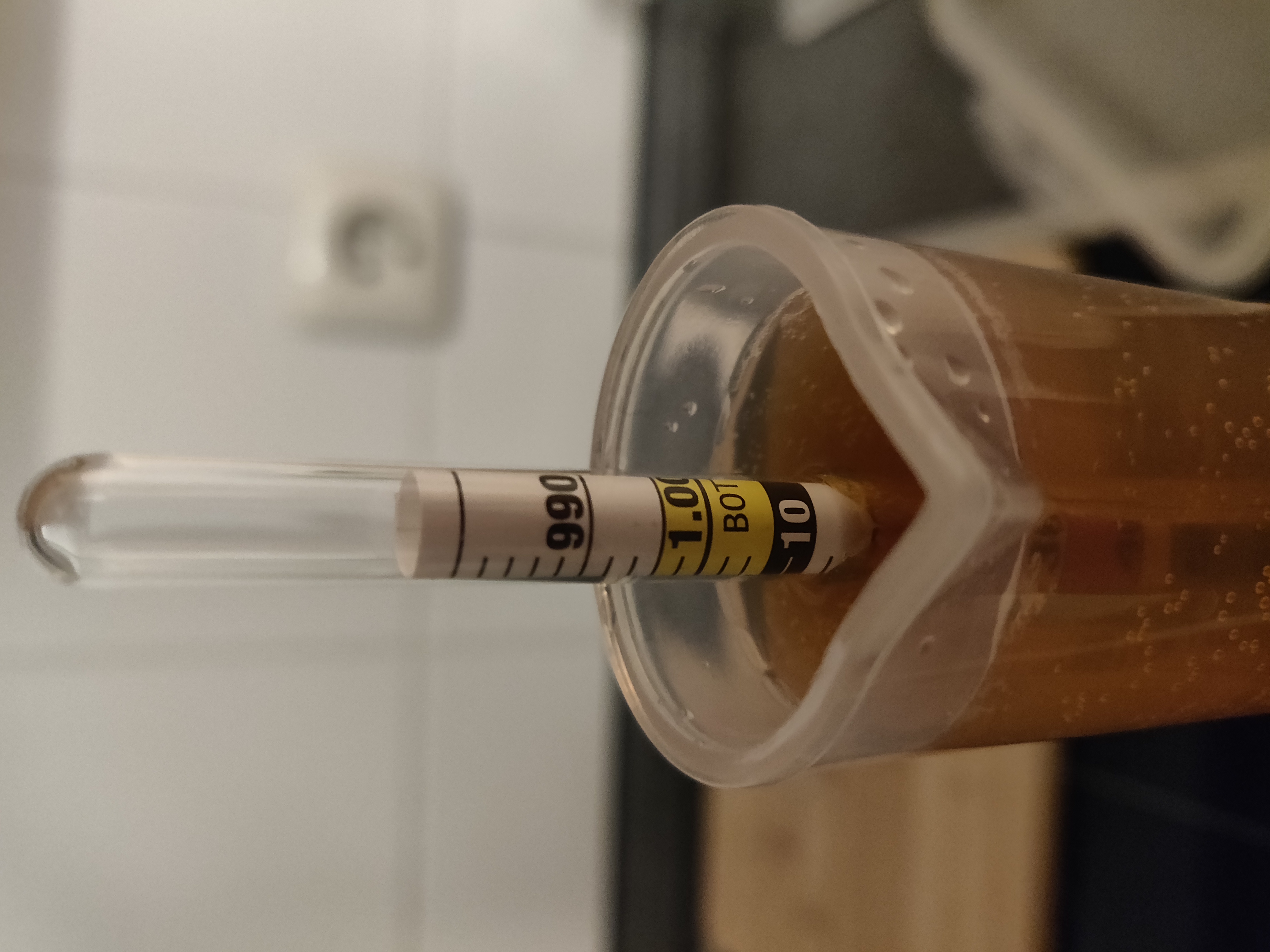 Die Bierspindel zeigt einen Wert von 1014 SG an
