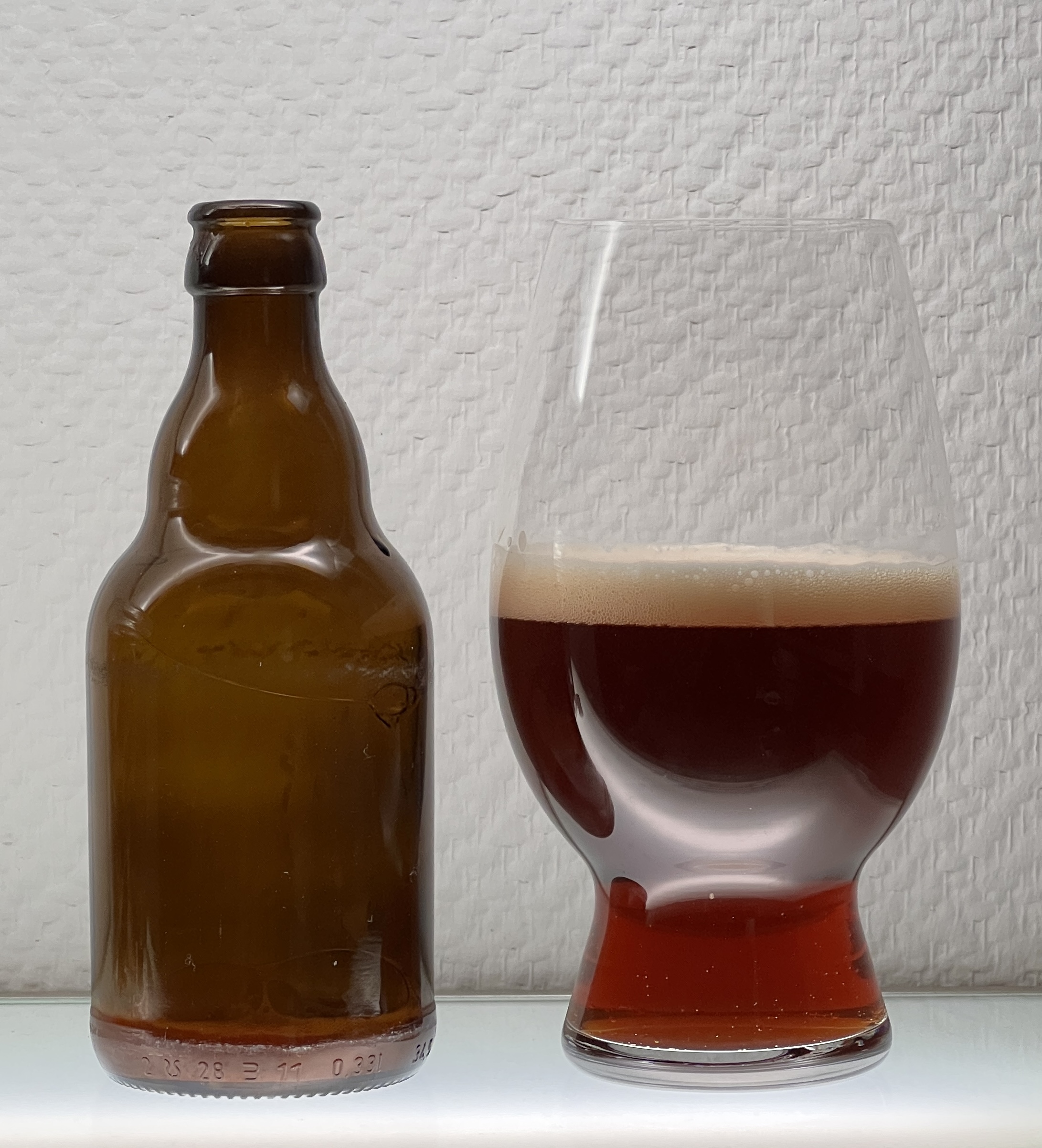 Ein Flanders Red. Gebraut vor anderthalb Jahren, drei Monate auf Sauerkirschen gelagert. Da muss noch etwas Kohlensäure kommen. Der Rest ist schon nicht schlecht.