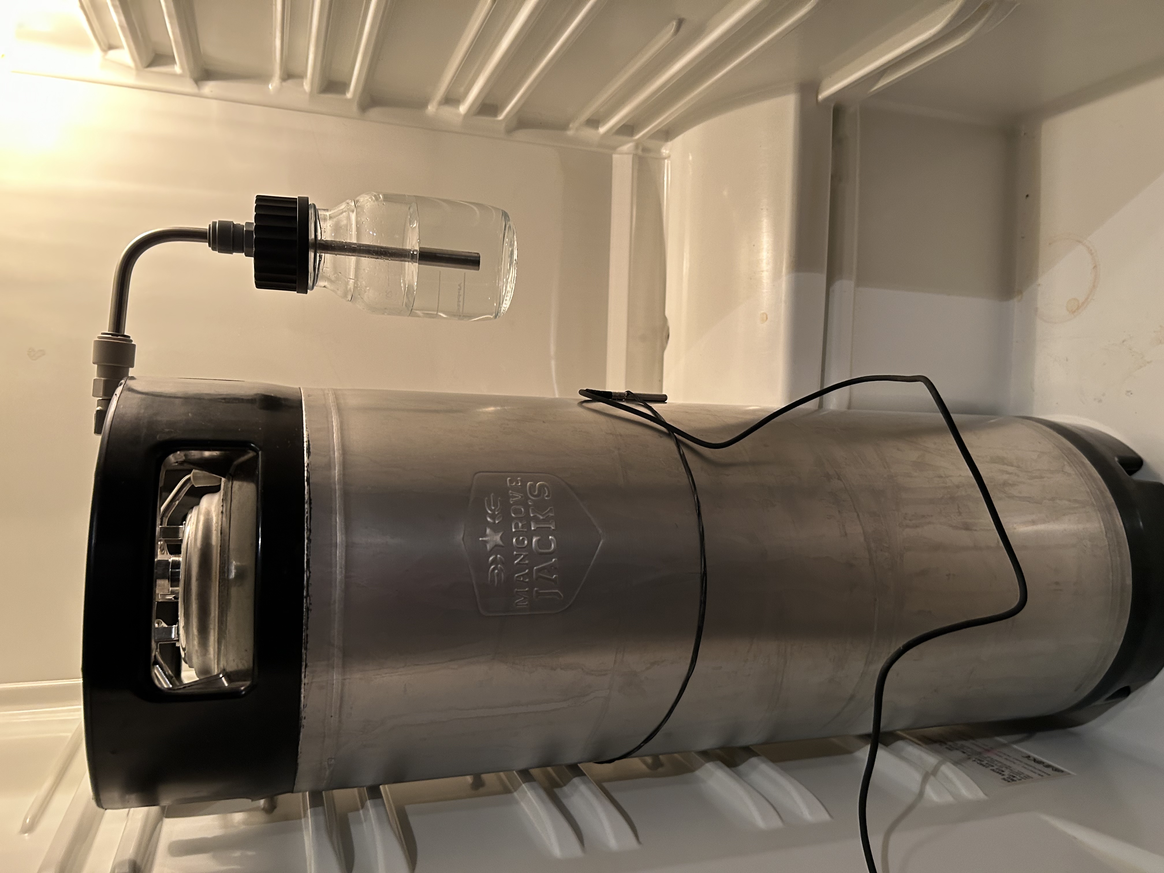 Ich nutze dazu den 15 Gal (57 l) Edelstahl-Bottich von Brewpaganda. Der passt perfekt in die Inkbirdgesteuerte Gefriertruhe.