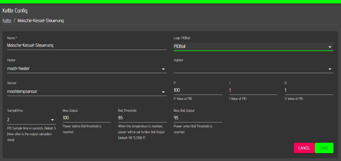 Hallo, nachdem ich jetzt Sensoren und Aktoren funktionieren, habe ich mich mit den Kettle-Settings beschäftigt.
