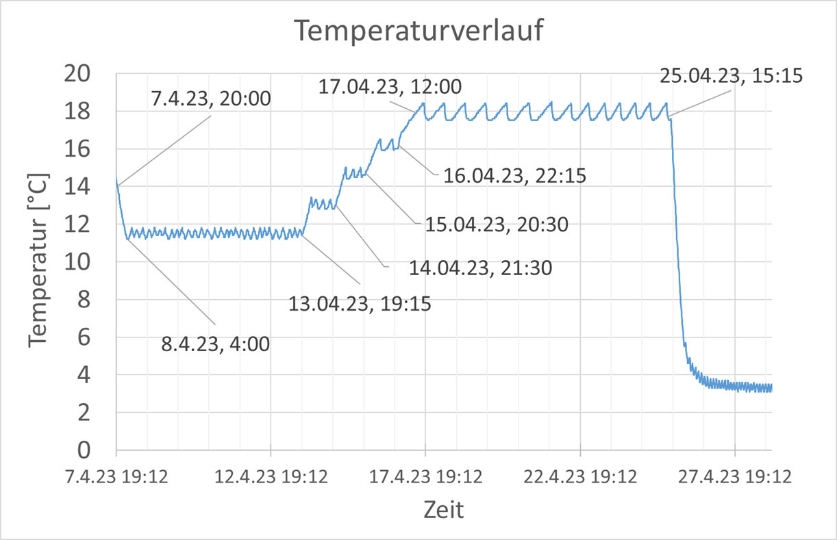 Temperaturverlauf Gärung bis ColdCrash