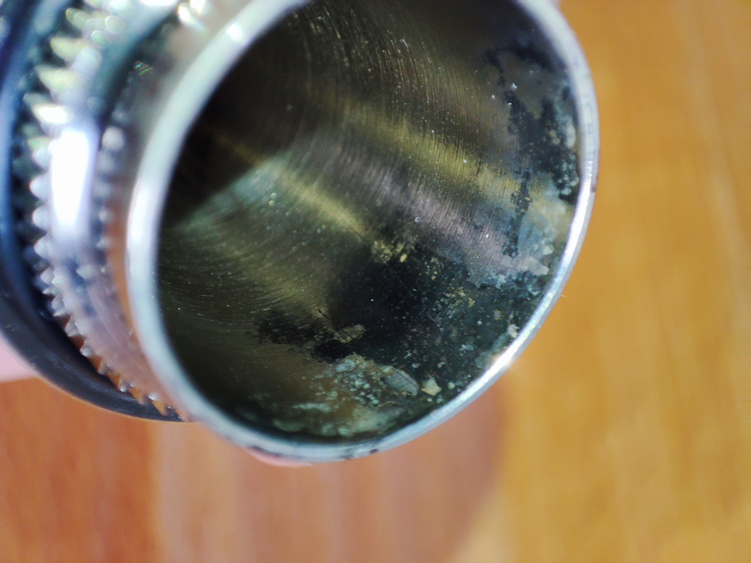 An allen anderen Teilen (auch den verchromten) sind keine sichtbaren Beläge bzw. Verfärbungen erkennbar. Vermutlich ist der Zapfhanstutzen aus einem anderen Metall oder mit einem anderen Metall überzogen. Ich frage rein interessenshalber... Sollte der Belag nicht zu entfernen sein, wird er eben abgeschrieben.