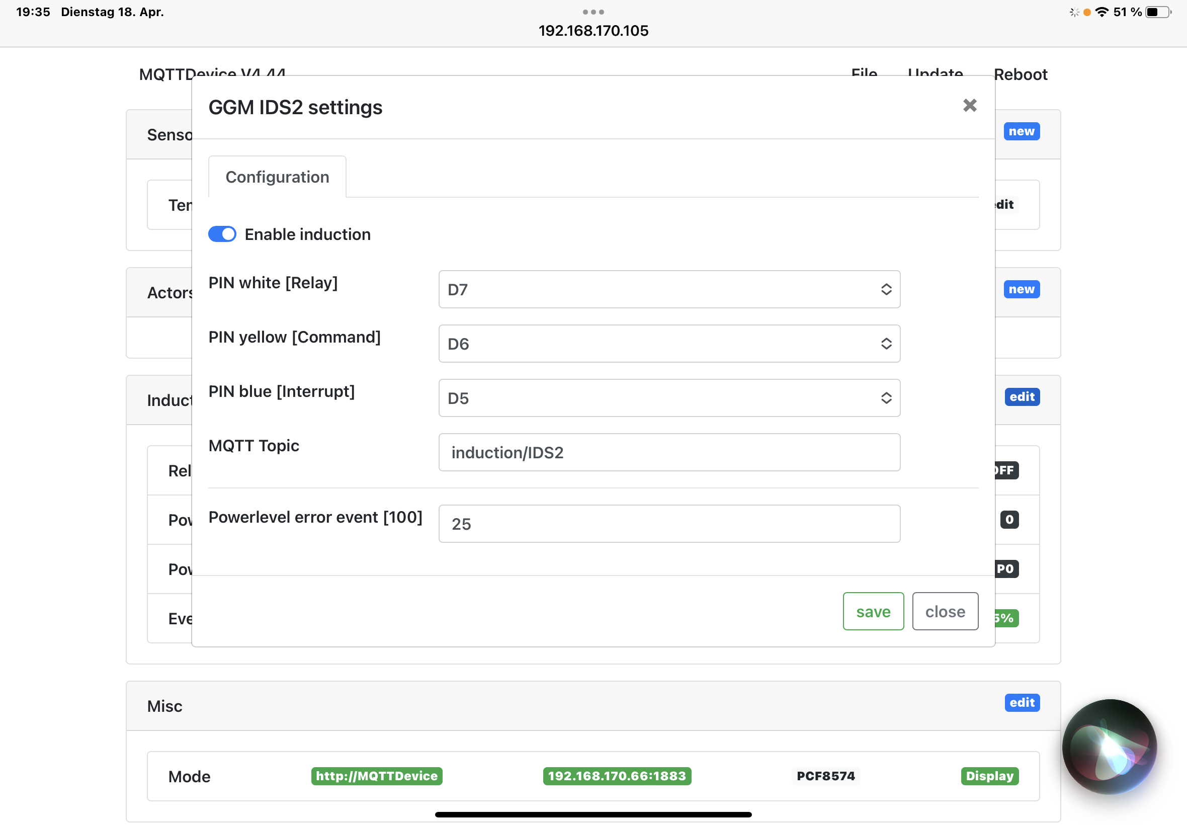 In der Config der MQTT Platine muss ich unter Misc die IP, den User und das Passwort des Raspi eingeben? Wäre das richtig?