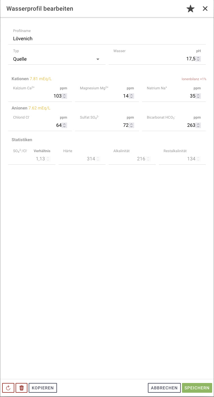 Im Wasserprofil von BF alles eingegeben, alles mehrfach kontrolliert, alles auf ppm (was ja nahezu identisch mit mg/l ist)