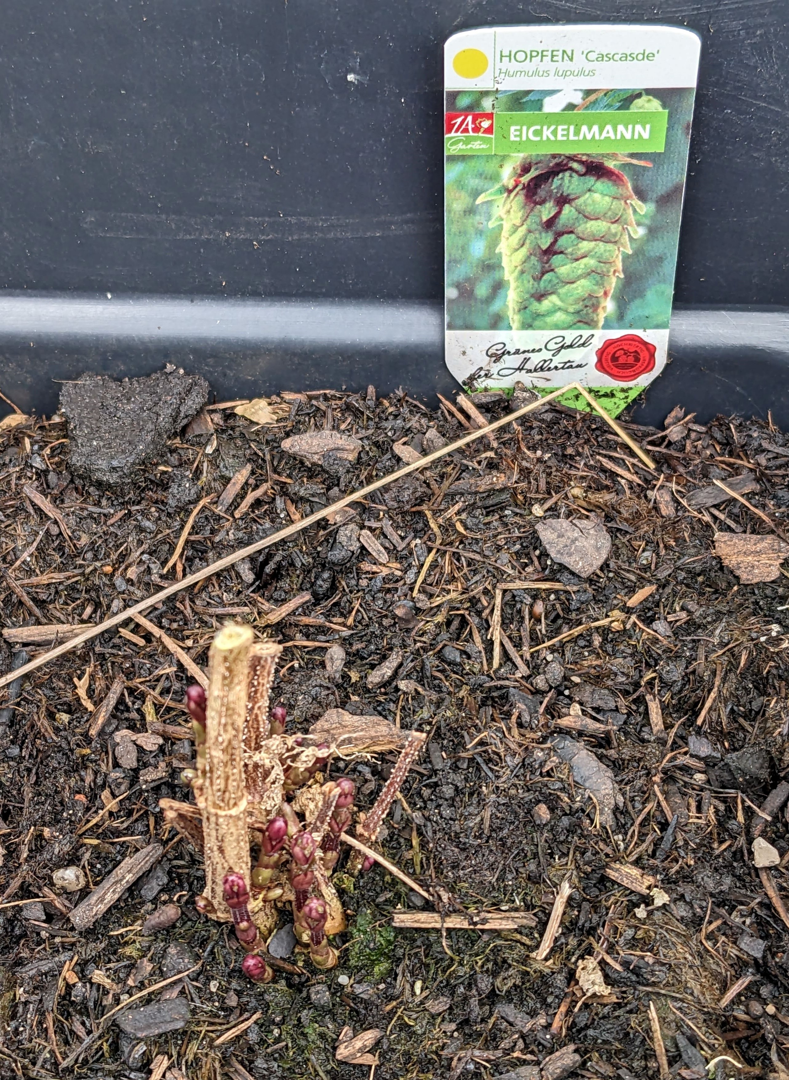 Ich steige dieses Jahr auch als Newcomer unter den HobbyHopfenBauern ein: Meine Kinder haben mir zwei Saaz Setzlinge geschenkt.