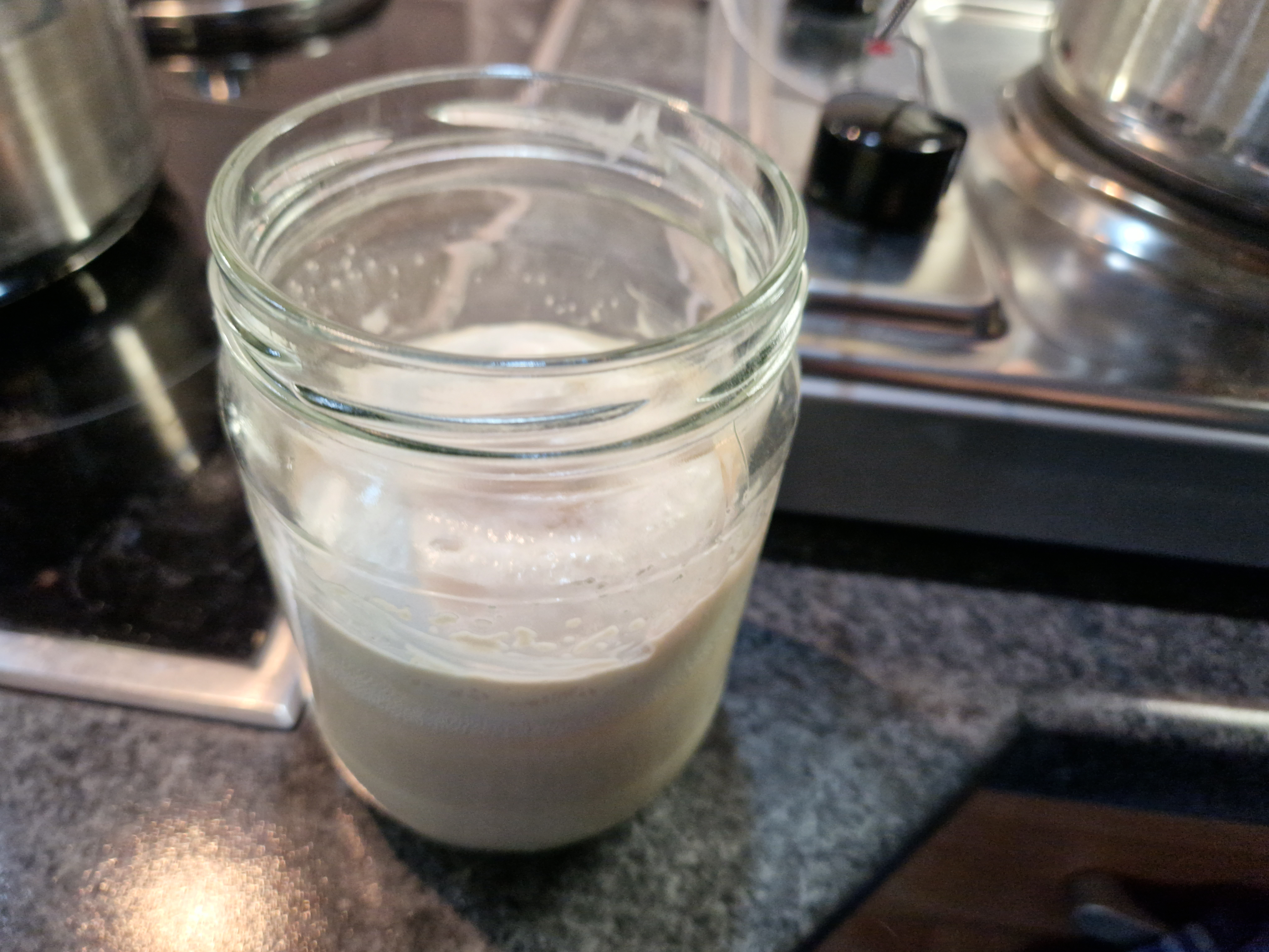 - Die Milchkanne hat am Boden einen Hohlraum, der dafür sorgt, dass die Milchkanne nicht ganz im Eiswasser steht. Da muss ich mir was einfallen lassen.