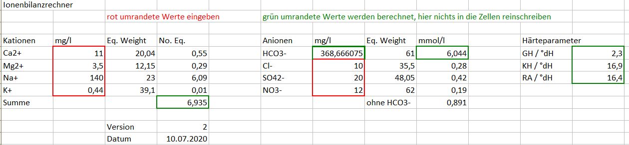 Tilos(Johnny H) Tool ionenbilanz zeigt das mit den Wasserwerten aus Beitrag #1 wunderbar auf: