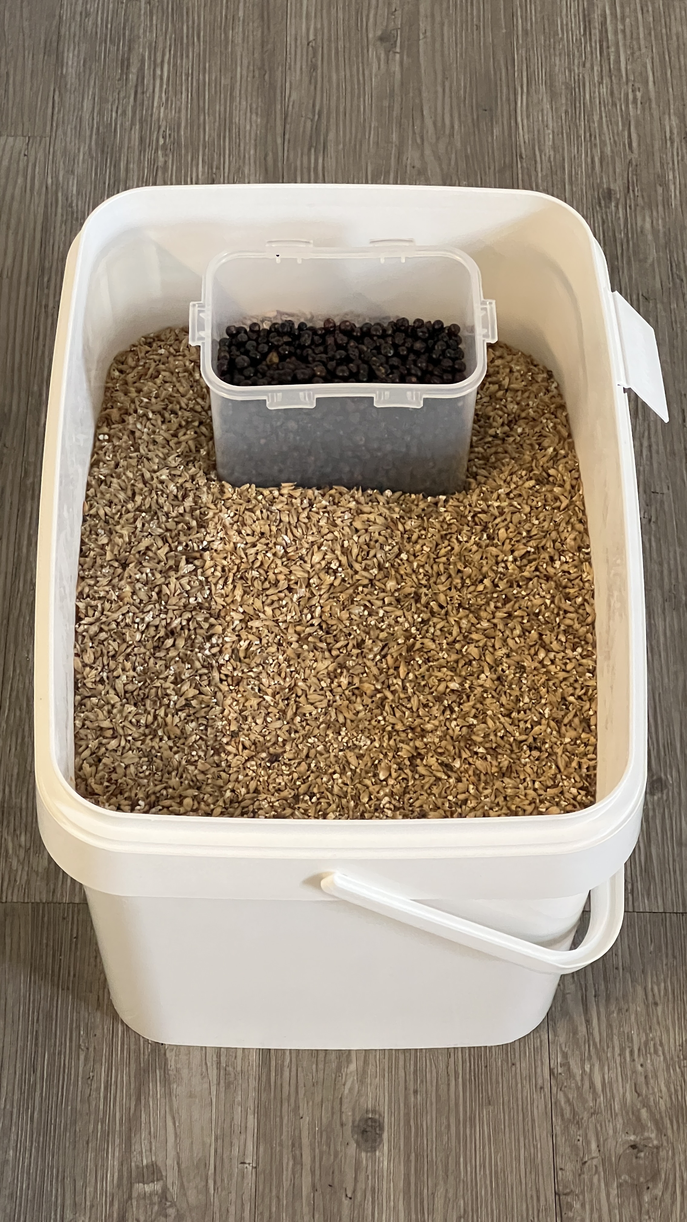 Den Juniper Rye Bock für die 12 BoC. Ich lerne gerade, dass es in Arbeit ausartet, 240 g Wacholderbeeren zu zerkleinern.