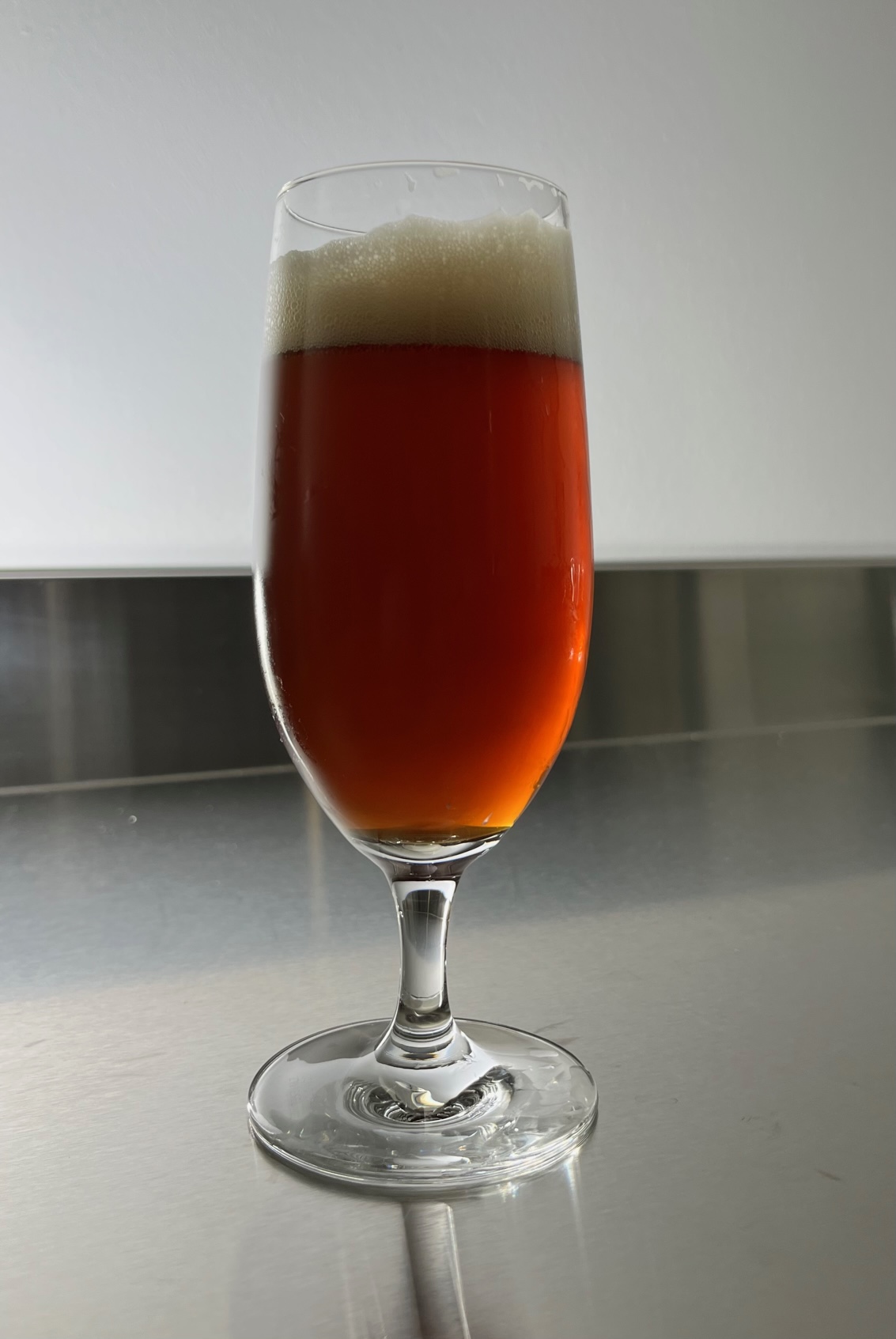 Ich braue heute multikulturell: ein bernsteinfarbendes Ale aus englischen und Münchner Malzen, einer milden traditionellen Hallertauer Hopfung und eine US-05 amerikanische Gärung.