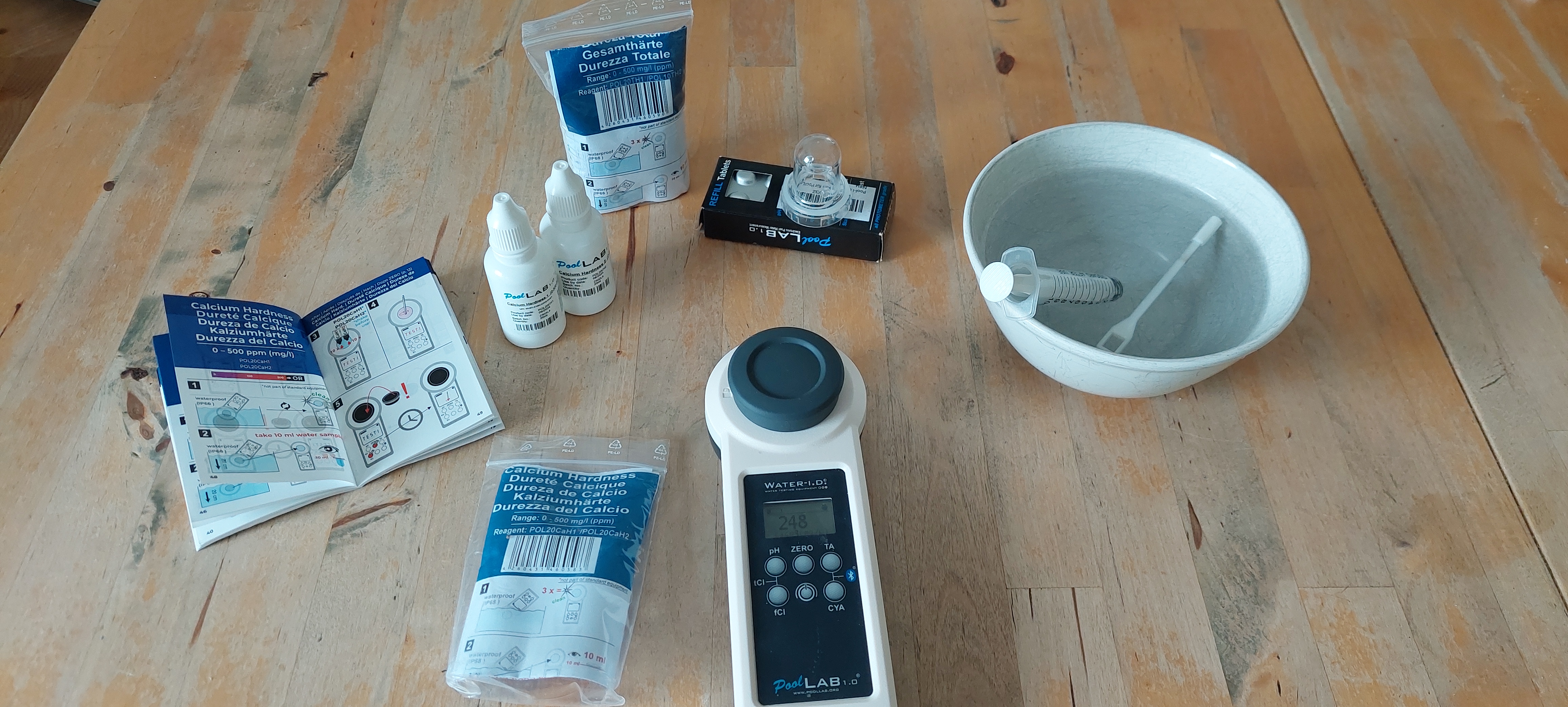 während der Pandemie habe ich für meine Kinder einen Pool angeschafft und für die Wasserhygiene ein Photometer "Pool Lab 1.0" gekauft. Dieses Teil kann u.a. die Alkalität (also die Karbonathärte), die Gesamthärte und die Calciumhärte des Wassers bestimmen. Bei der Beschäftigung mit dem Thema Brauwasser, kam mir der Gedanke mein Messgerät einer weiteren - viel wertvolleren - Nutzung neben der Poolwasseranalyse zuzuführen.