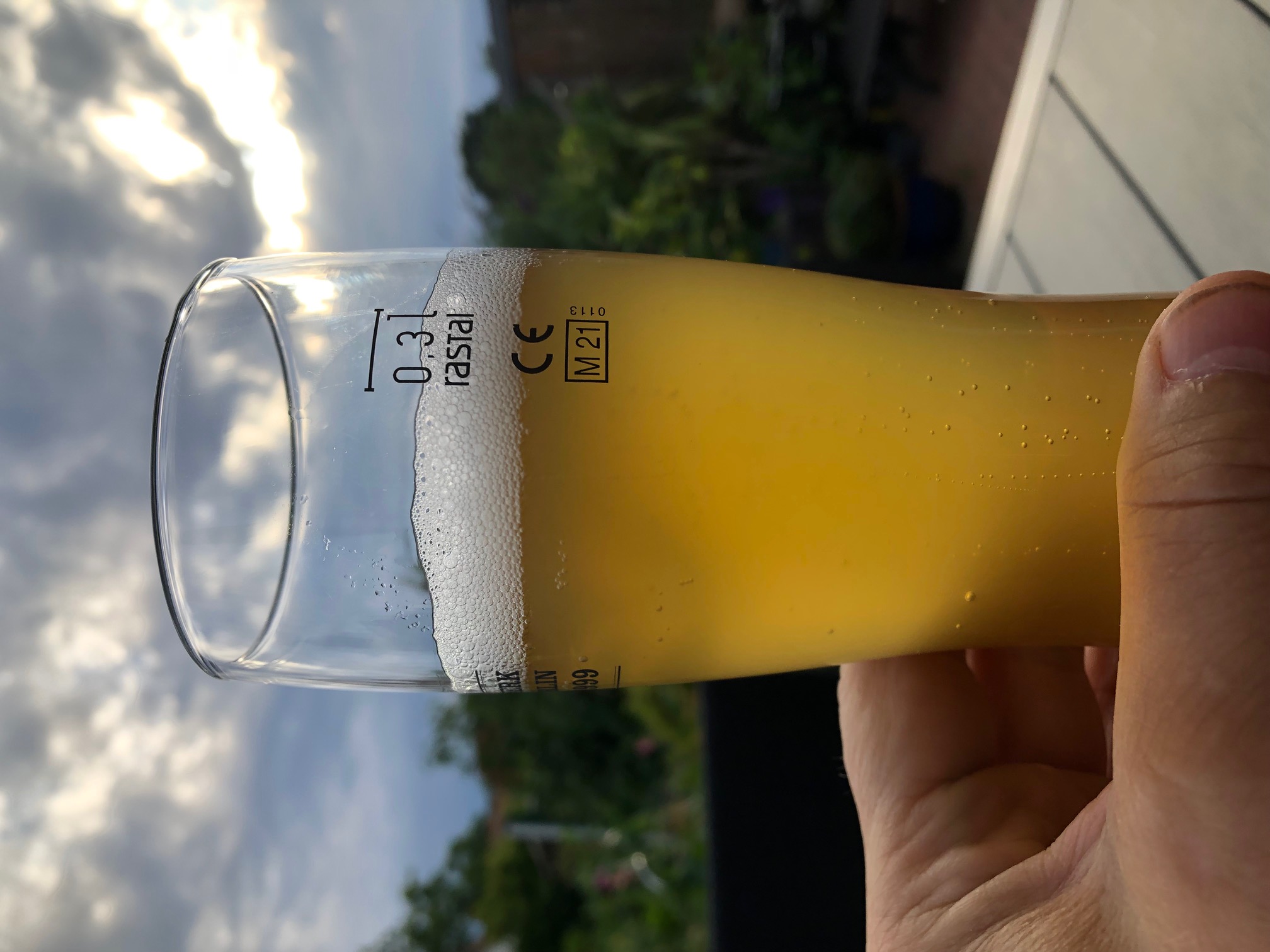 Mein Mittsommer-Kveik, drei Wochen vor dem Fest gebraut. Nichts traditionelles, sondern ein PaleAle mit amerikanischen Hopfen, und Cascade Cryo gestopft. Split-Sud, um drei Kveiks nach 3 Jahren (getrocknet & tiefgekühlte Flocken) endlich aufzufrischen; bei ~28°C vergoren. Im Bild die Variante mit der Framgarden. Generell schon wie erwartet lecker, allerdings etwas astringent; ich muss mal besser auf den Maische-pH achten, glaube ich.