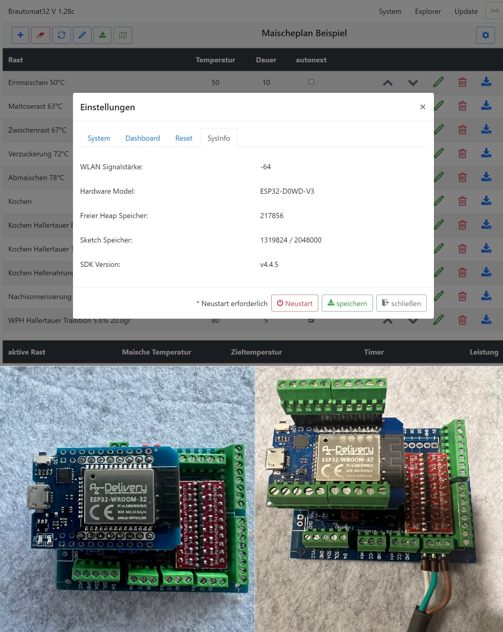 Meine aktuelle Brautomat dev Version 1.28c wartet auf den abschließenden Test Brautag. Leider verschiebt sich der Brautag aktuell immer wieder. Die Testversion liegt auf github.