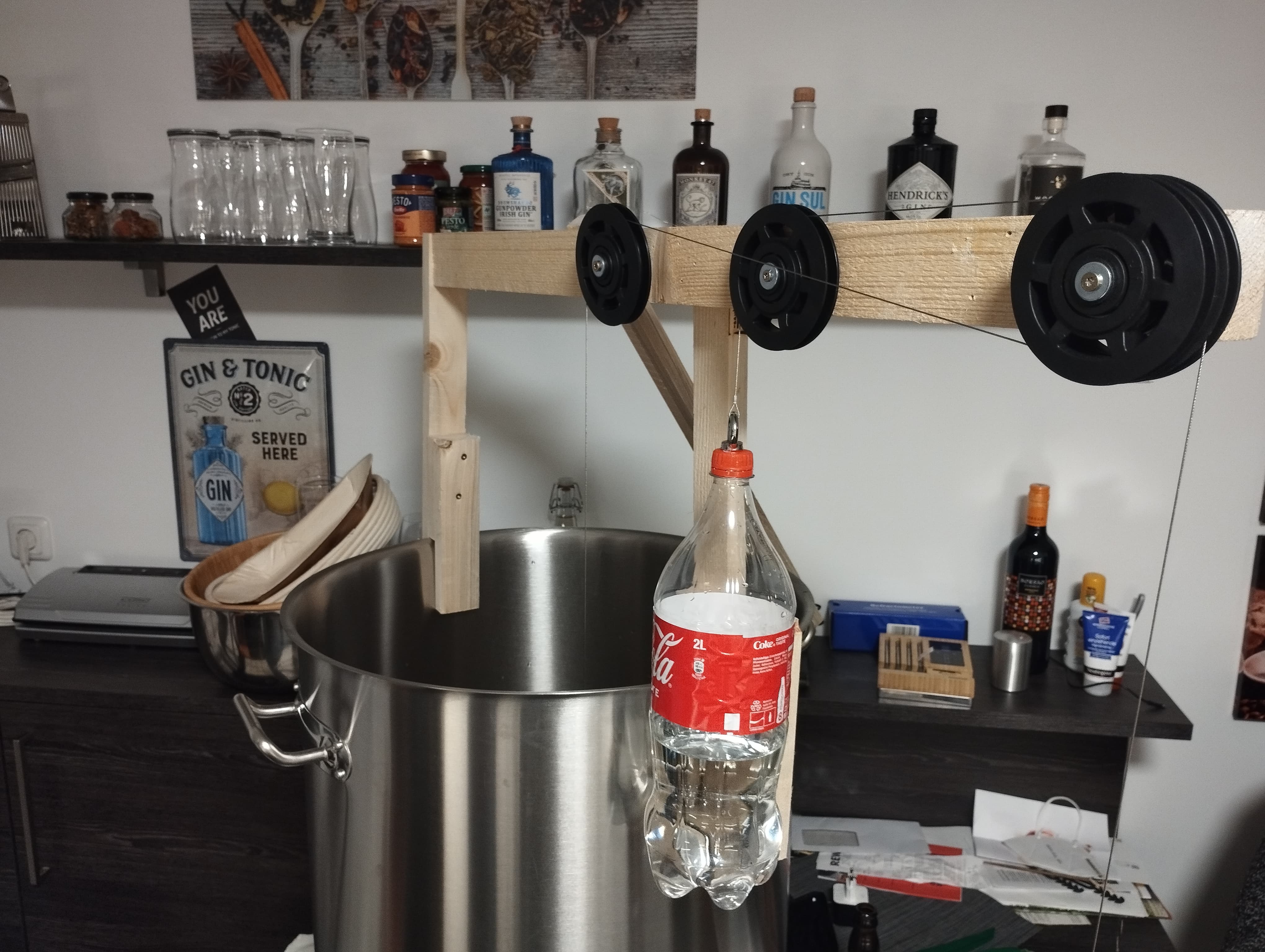 1. Hat jemand eine gescheite Idee, wie man die Konstruktion am Läuterbottich befestigen kann? Für die Testphase wollte ich eine einfache Holzkonstruktion mit Schraubzwingen am Topf befestigen.