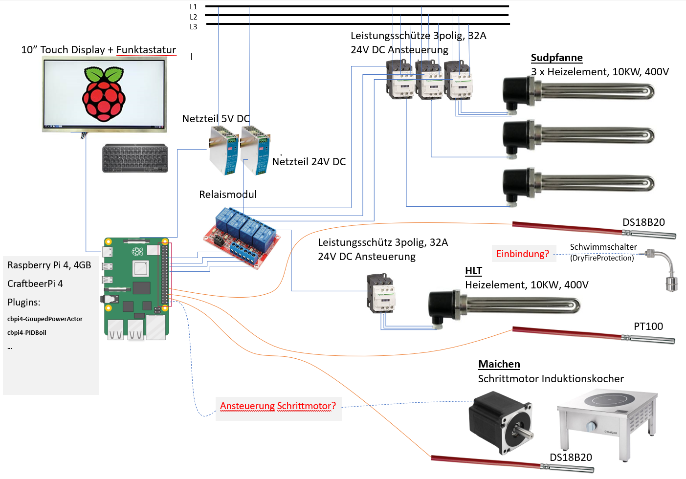 Planung Brausteuerung CBPi4 mit 10KW Heizelementen und Induktion