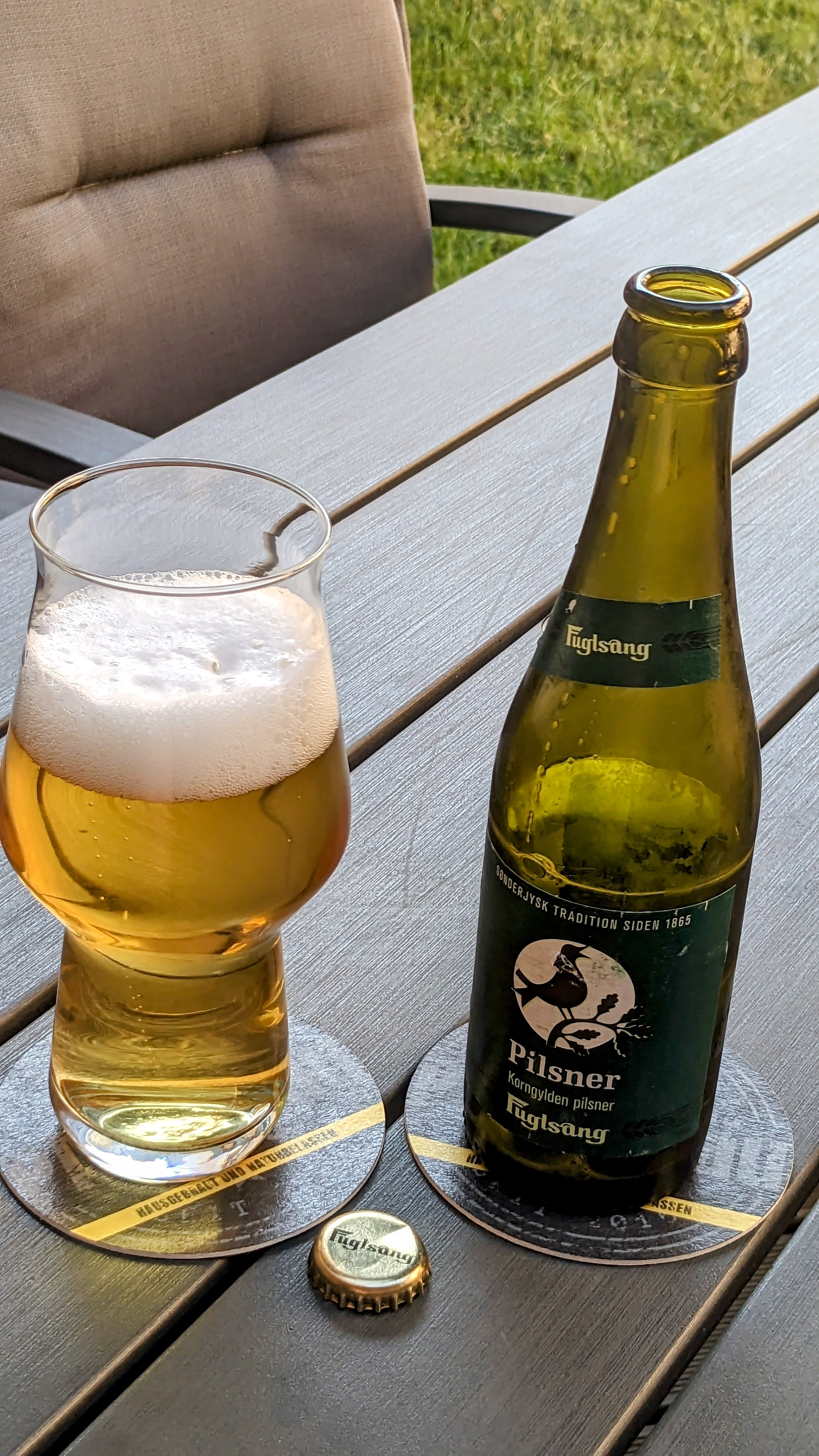 Eines der Mitbringsel meines Schwagers von seinem Dänemark Urlaub. Ein Pils der "Fuglsang"Brauerei. Trotz Mais-Anteil ein doch typisches naja mitteldeutsches Pils :Bigsmile