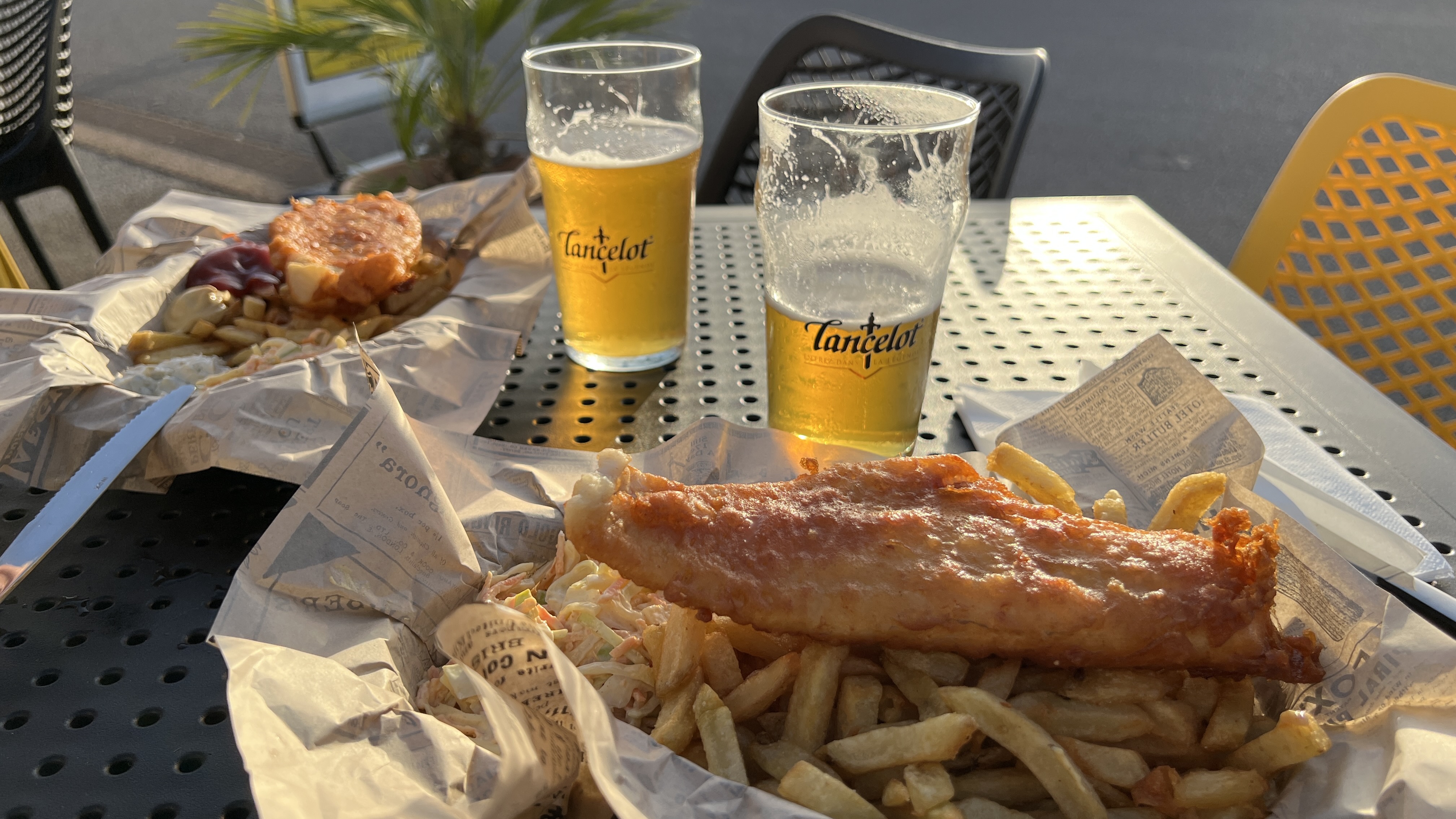 Wir probieren bretonische Biere. Ein dunkles mit Buchweizen von Brasserie Lancelot, ein Wit (auch von dort) und ein IPA von Brasserie des Abers. Das finde ich für ein 6 %iges IPA etwas leicht und wenig bitter. Die Lancelot Biere waren klasse.