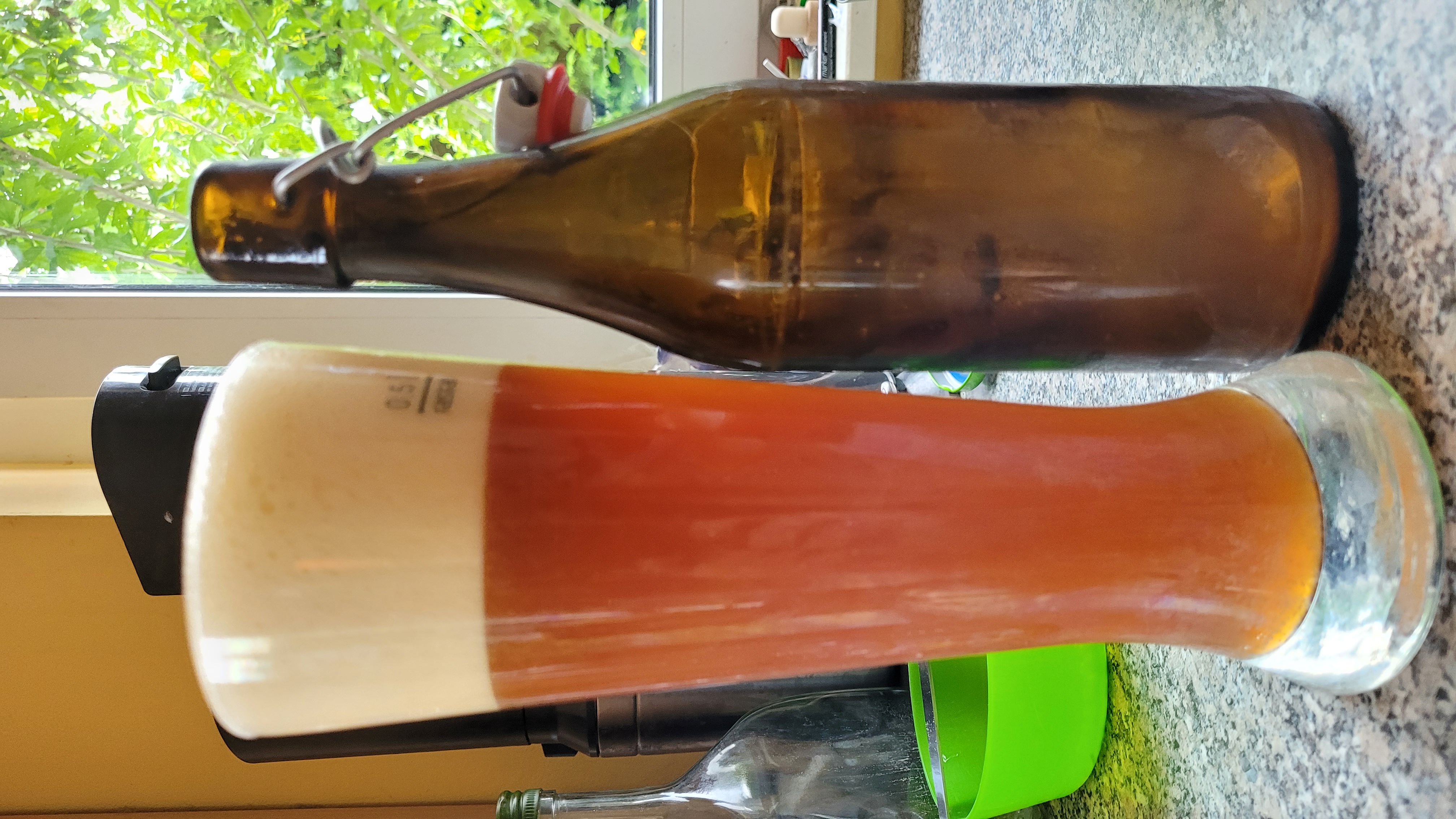 Man ist ja neugierig wie ein kleines Kind und deswegen hab ich mal was gezwickelt und mit nem alten Wassermax etwas CO2 drauf gegeben. Ich weiss, nicht optimal, aber Neugier siegt. Kein Buttergeschmack, kein Gemüse, kein Mais, kein Fruchtkorb, es schmeckt wie Bier. Es ist deutlich bitterer als die angestrebten 25IBU. Merke fürs nächste Mal, noch exakter mit der Feinwaage die Hopfengaben abwiegen und anpassen, wenn wie bei mir ein Fehler passiert. Hopfenmet ist deutlich eher geneigt Fehler zu verzeihen als Bier das ist. Das Aroma vom Saphir, wie ich ihn liebe, geht aber schmeckbar rein. Ich bin gespannt, wie sich der Geschmack jetzt entwickelt, wo der Sud auf Flasche liegt.