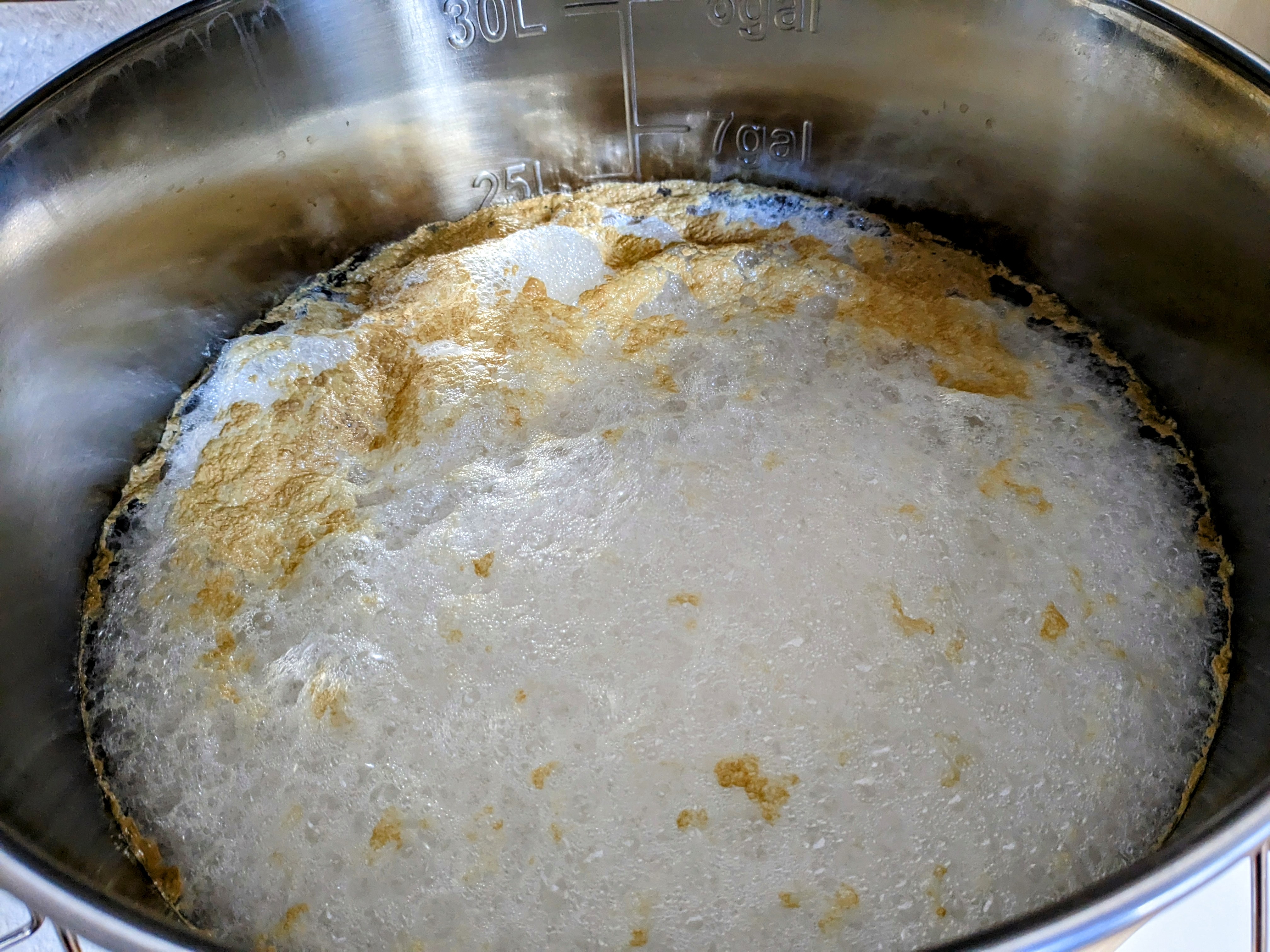 Ich musste dann ein paar mal einschneiden, damit es überhaupt weiterging. Allerdings war meine Stammwürze höher als erwartet. 1.063 SG statt berechneter 1.048. Dafür aber 1 Liter weniger.