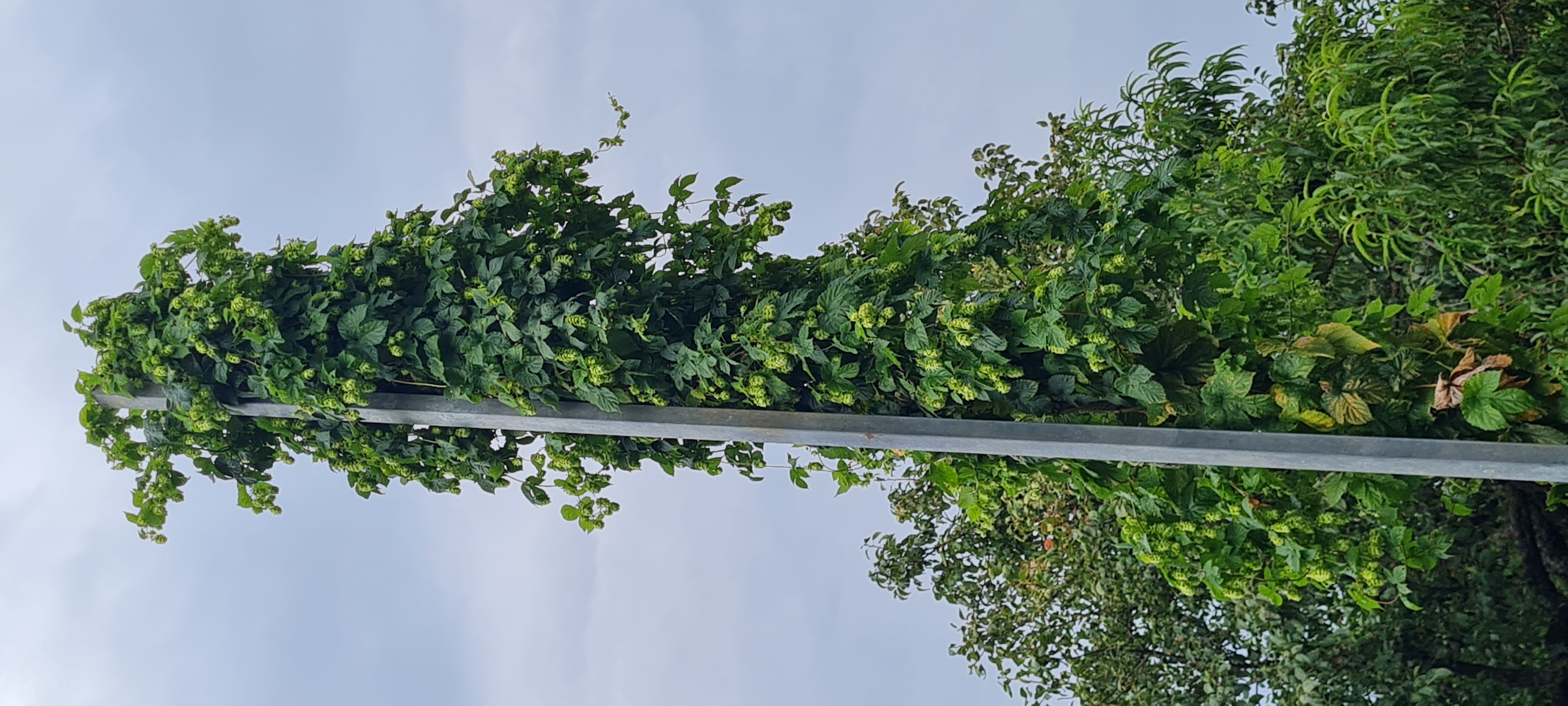 Du kannst selbst prüfen: Nimm eine Dolde mit brauner Spitze. Wenn sie beim Umknicken knackt und das Lupulin In Kügelchen zum Vorschein kommt und klebrig ist, ist Erntezeit. Wenn du dann zu lange zuwartest, verschenkst du Aroma! Oder du erntest sukzessive…