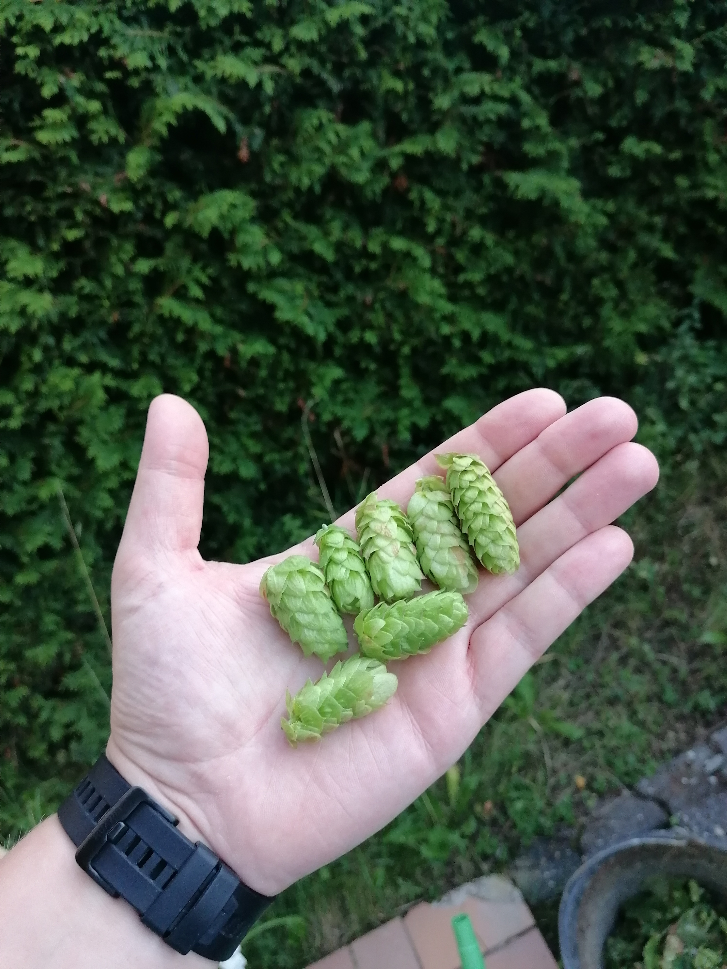 Wer weiß, vielleicht hat dort vor vielen Jahren ja mal ein Hobbybrauer gewohnt und uns seinen Schatz hinterlassen. Von der Menge an riesigen Dolden an der Pflanze hätte ich jedenfalls zig Sude brauen können...