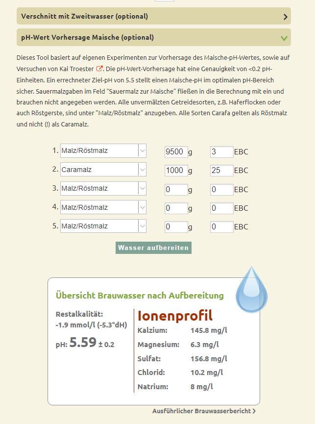 Kalzium und Sulfat sind jeweils unter 200mg/l, was lt bekanntem Artikel aus dem Braumagazin unter der Geschmacksschwelle liegen sollte.