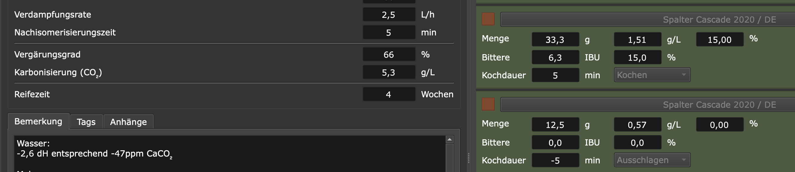 Das verstehe ich noch nicht ganz. Laut deinem Beispiel ist die Nachisomerisierungszeit also 15 min. Die Hopfengabe soll bei -15 min erfolgen.rakader hat geschrieben: Montag 2. Oktober 2023, 13:10 Steht beispielsweise die Hopfengabe bei einer Nachisomerisierungszeit von 15 min dagegen bei -15 min, gibt man den Hopfen erst bei 80 °C nach 15 Minuten hinzu. In diesen 15 Minuten muss der Sud auf 80 °C abgekühlt sein.