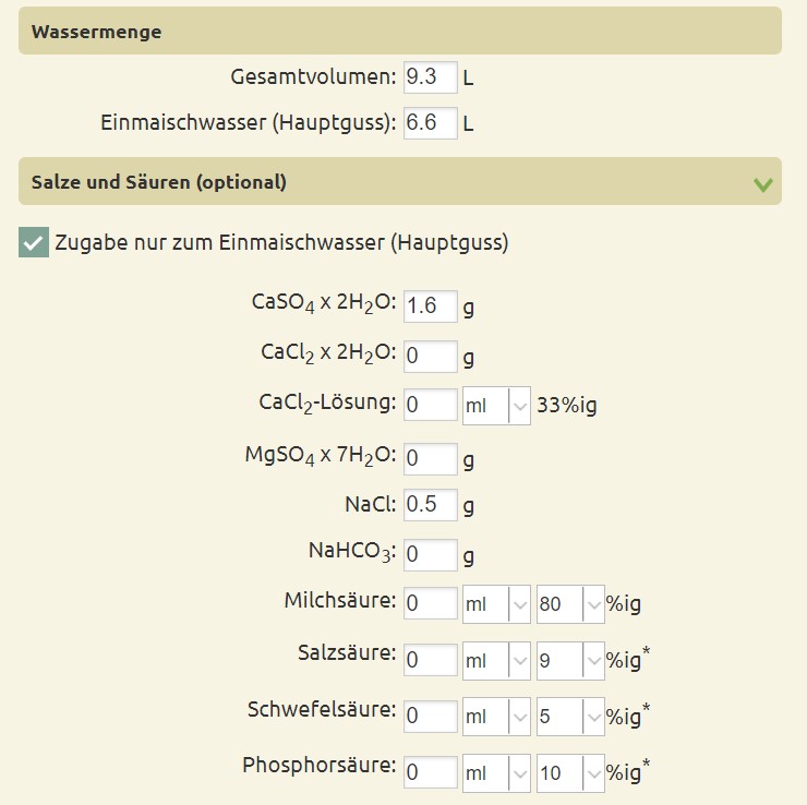 Brauwasser-Rechner mit Zielmengenbestimmung, neueste Version hier