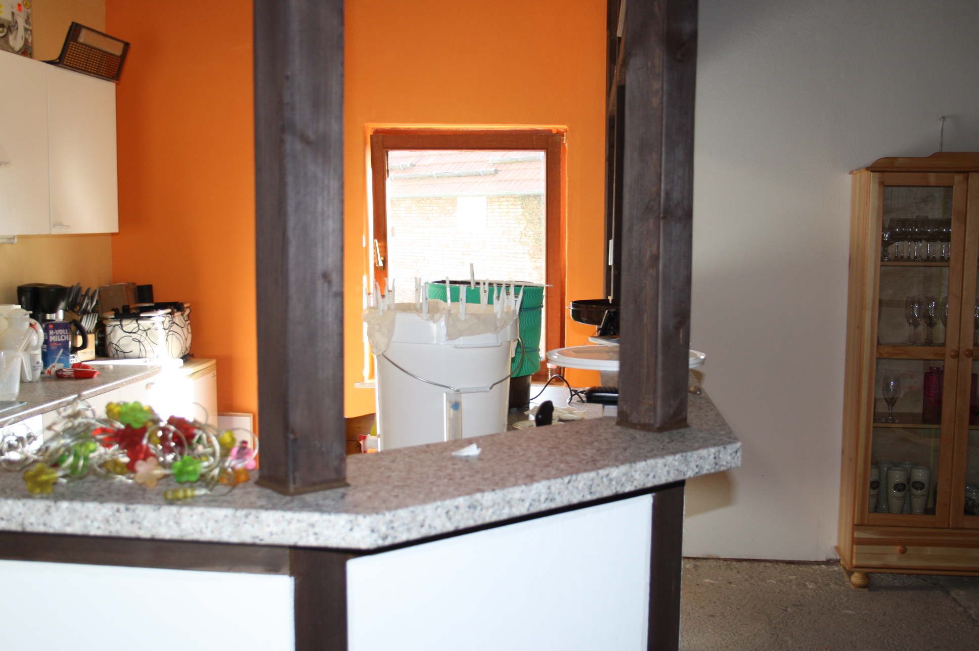 Gespindelt und UFF (leider habe ich mir den Wert nicht notiert) Stammwürze über 14°Plato. Naja 4 mal den Wasserkocher gestartet (Fassungsvermögen 1,7 Liter) und verdünnen. Dann war ich bei ca. 21l fertiger Würze und 13,76°Plato (gerechnet mit dem Rechner von Fabier). Naja das muss erst mal genügen. Noch schnell nen kleinen schluck aus dem Messzylinder um mal zu sehen wie sowas schmeckt. Heidewitzga ganz schön bitter und süß. Dann hab ich den Gäreimer in den Keller geschafft zum runterkühlen. Werde Morgen oder Übermorgen dann die Hauptgärung starten.