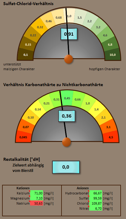 In dem Braumagazinartikel findet sich ja auch der Hinweis, das Chlorid-Sulfat-Verhältnis zu ignorieren. Das gilt insbesondere bei niedrigen Werten dieser Stoffe. Also bräuchtest du diesem Aspekt keine Achtung schenken.