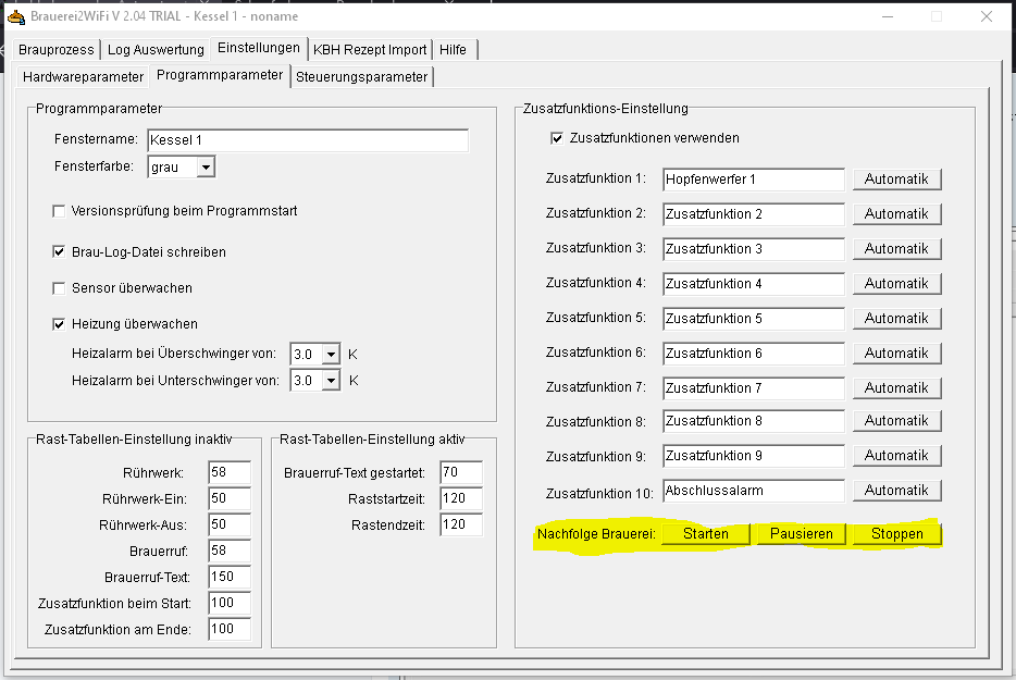 - Dann solltet ihr in den Steurungsparametern bereits die andere Brauerei Starten, Stoppen und Pausieren können...