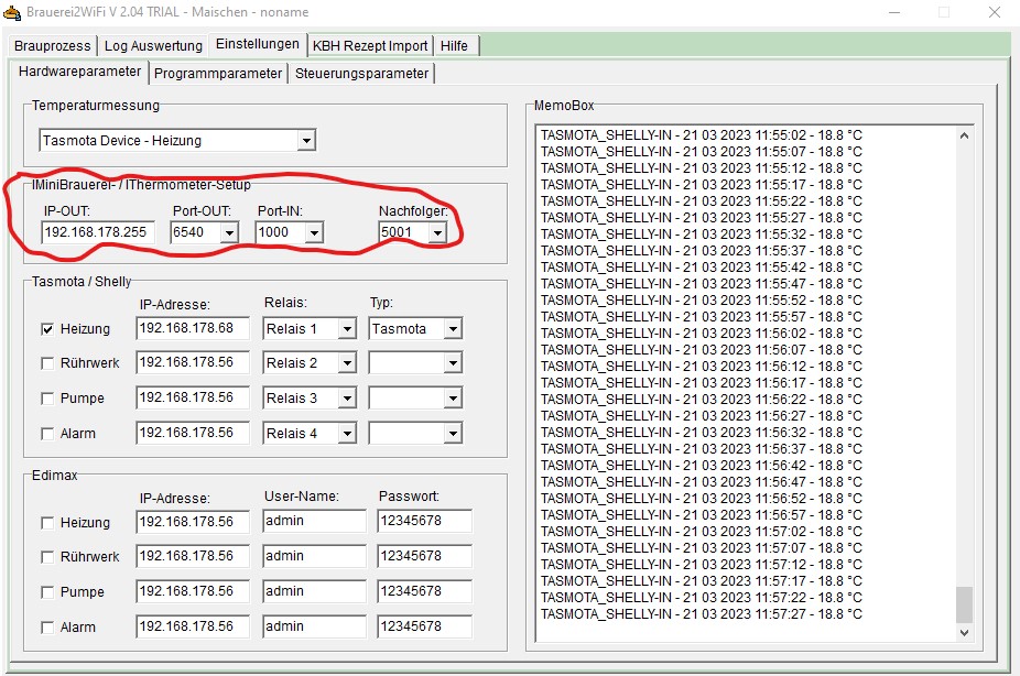 Dann in dem IMiniBrauerei Wemos Port Out= 5002 und Port In= 5001 einstellen
