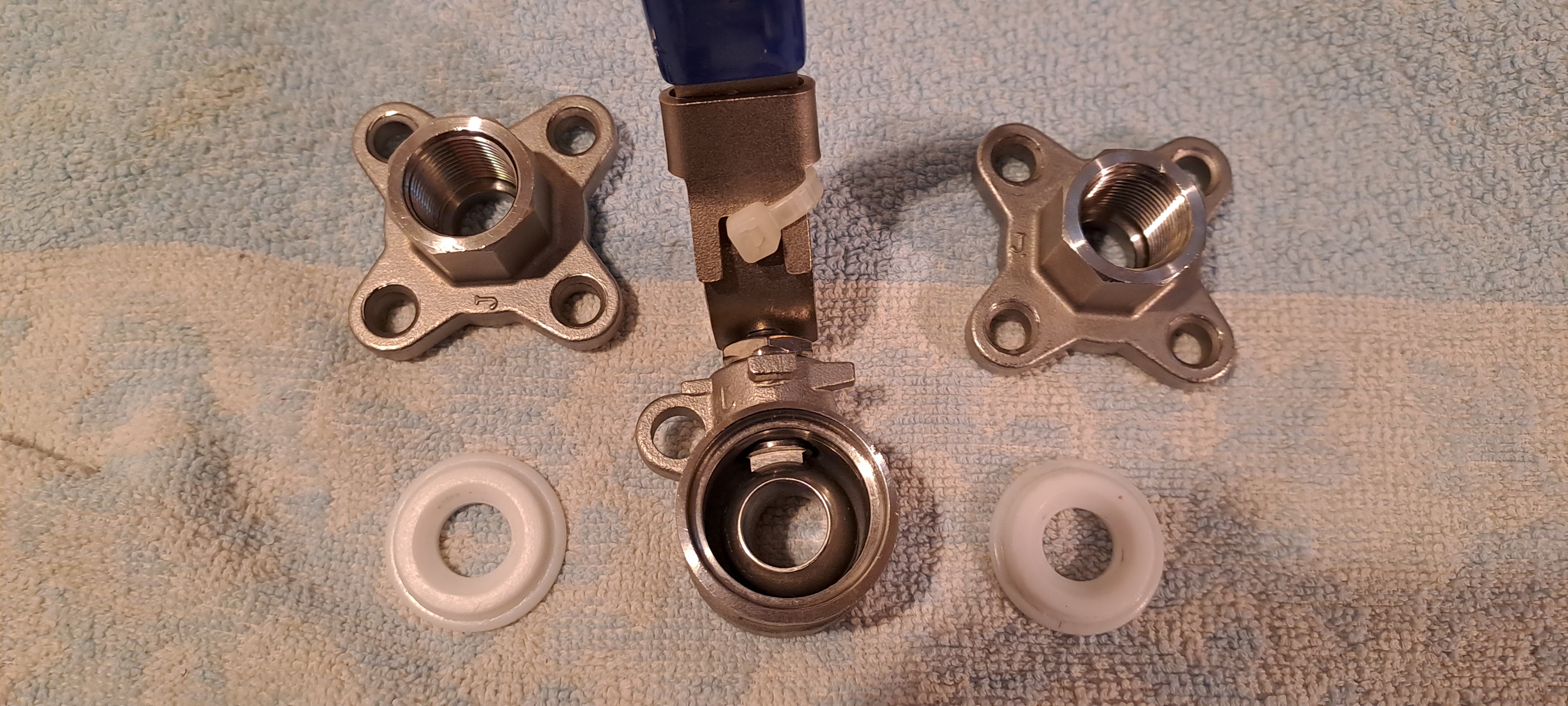 Die 2 und 3 teiligen Kugelhähne sind nicht zum auseinanderbauen gedacht, weil auch nicht für Lebensmittel konzipiert. Die Scheibenventile haben den Nachteil, dass sie den Querschnitt nicht vollkommen frei geben. Sind aber Reinigungsfähig, für Wasser und Würze geeignet, für Maische ungeeignet, weil sie verstopfen.
