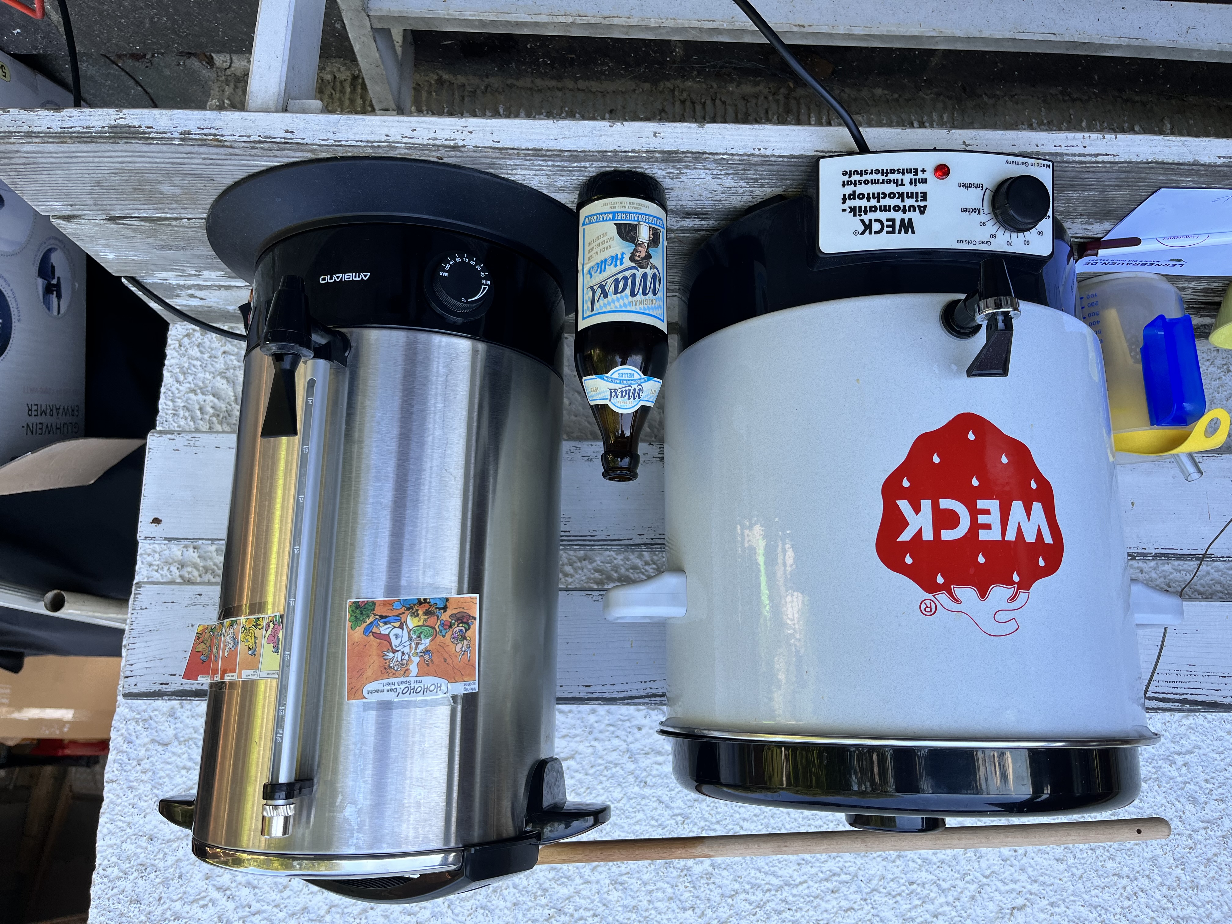 Achtung: nicht zu viel Sauerstoffkontakt- evtl über Silikonschlach in den Einkocher leiten