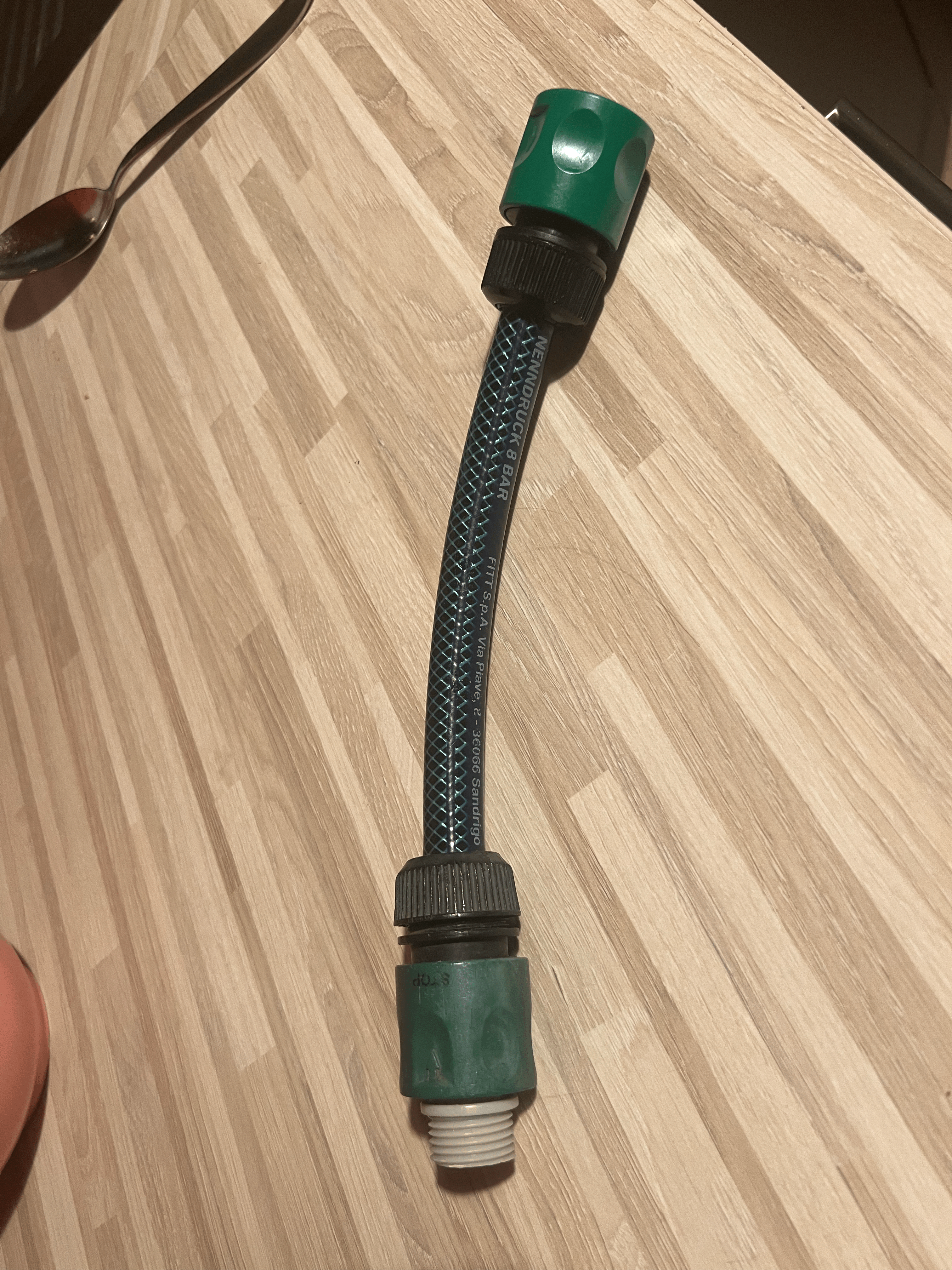 Jetzt hat der Kühler einen neuen Anschluss, mit dem ich direkt an den Gardena-Adapter in der Küche kann.