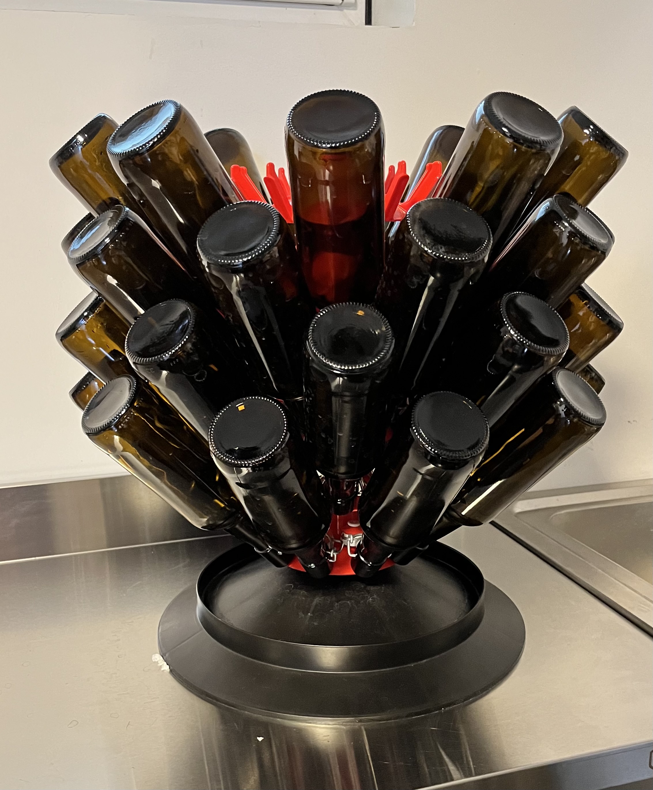 Das ist umgeschlaucht worden und steht zum cold crash noch draußen, bevors morgen in die Flaschen schlussendlich geht.