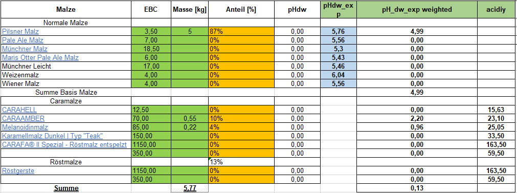 Die werden wie normale Malze berechnet. Nur die Karamellmalze haben ihre eigene Formel.Eikonal hat geschrieben: Dienstag 6. August 2024, 18:54 Sollten die Röstmalze bei der pH Berechnung bei den "normalen Malzen" eingetragen werden oder bei den Karamalzen?