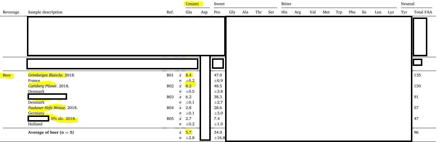 Kennt/Hat jemand von Euch noch weitere Studien/Erkenntnisse, die sich mit Umami oder dem Gehalt freier Aminosäuren in Bier befassen. (letzteres nicht nur summarisch, sondern aufgeschlüsselt nach einzelnen, z.B. Glutaminsäure (Glu), Asparaginsäure (Asp), Prolin (Pro) usw.)? Oder andere Erkenntnisse zu diesem Themenbereich?