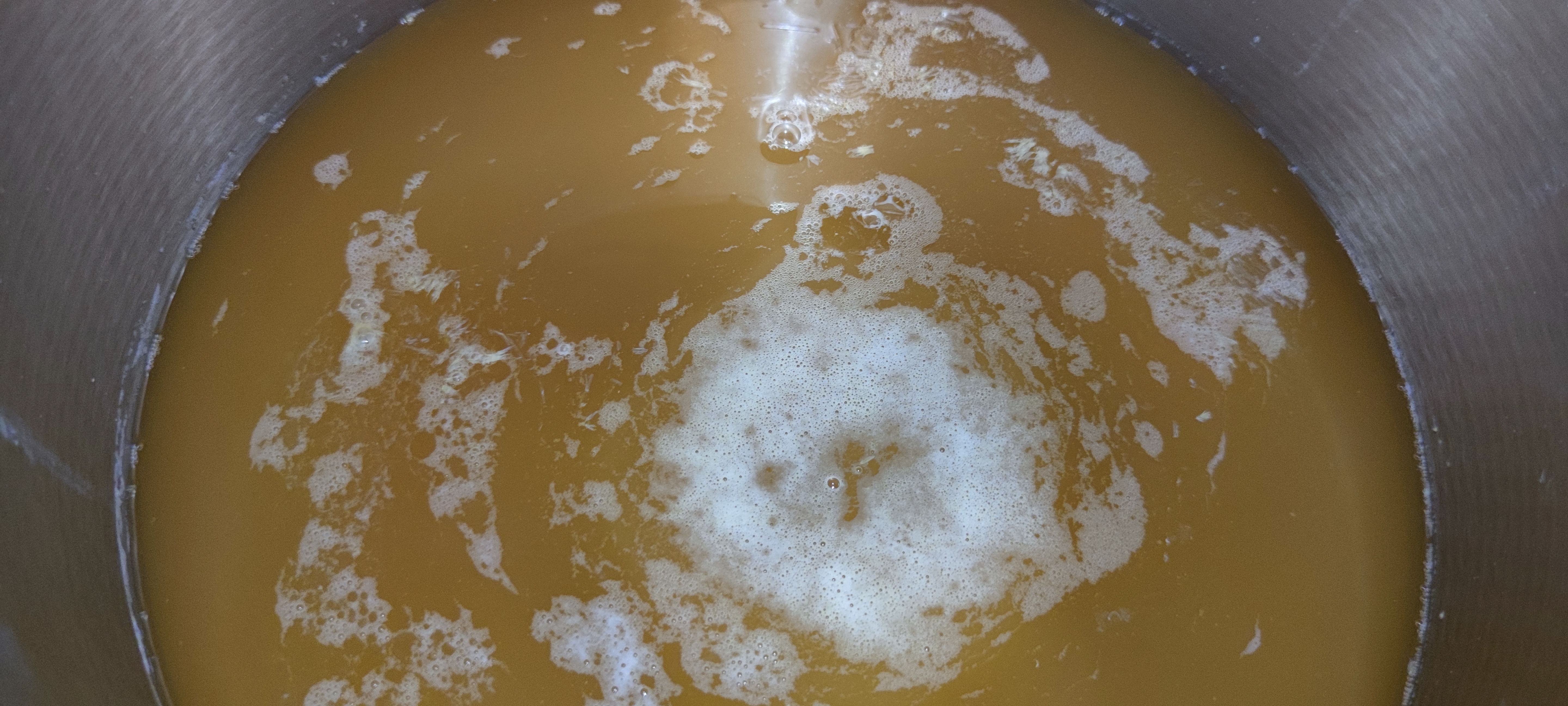 Als Hefe geerntete Kveik Lutra. Gestern mit alkoholfreiem Bier angefüttert. Steht jetzt bei 28 Grad im Gärschrank.