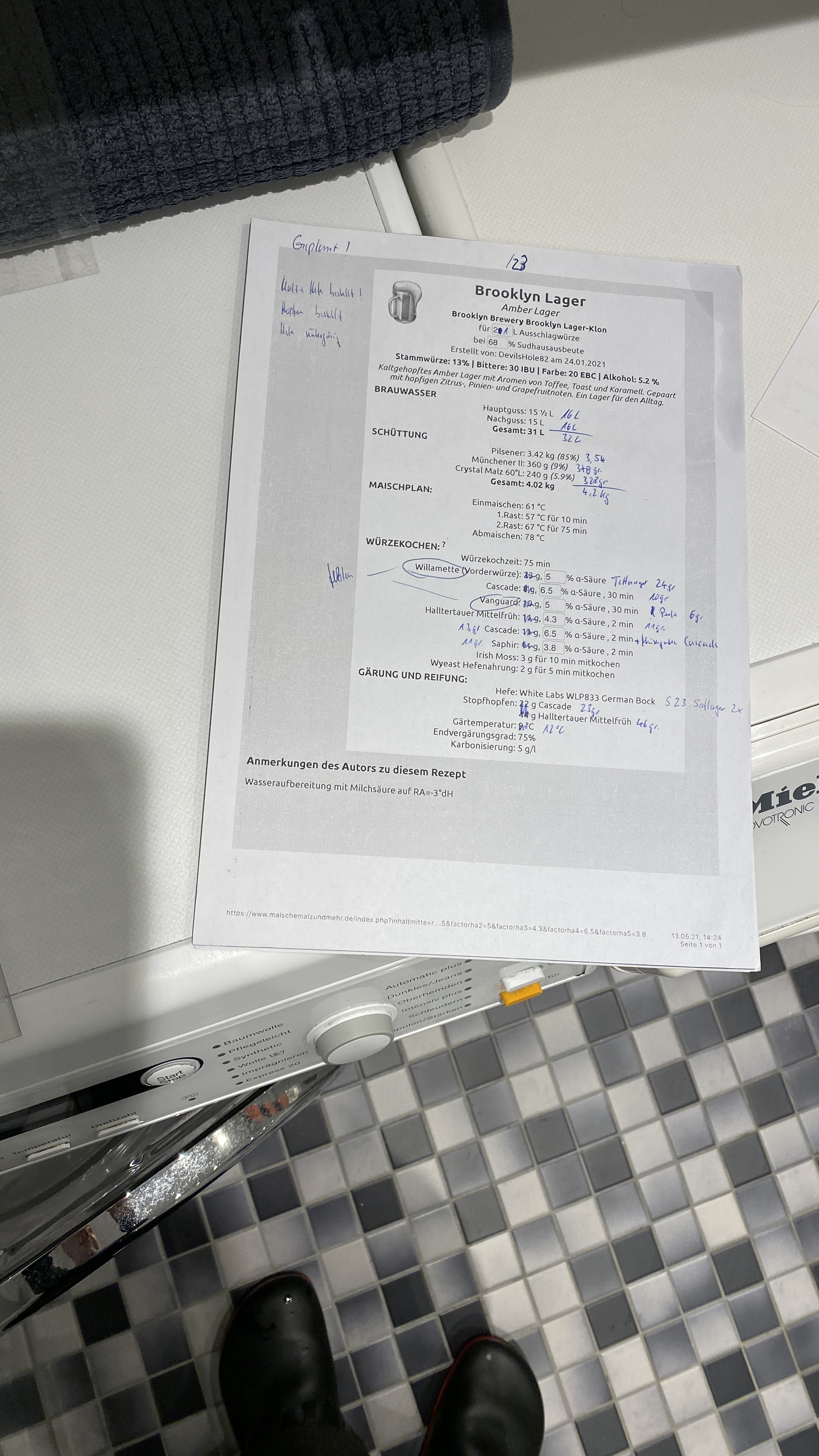 Rezept, hier nur grobe Orientierung, was Malz und Maischeplan angeht. Es soll ein "Amber Lager" mit