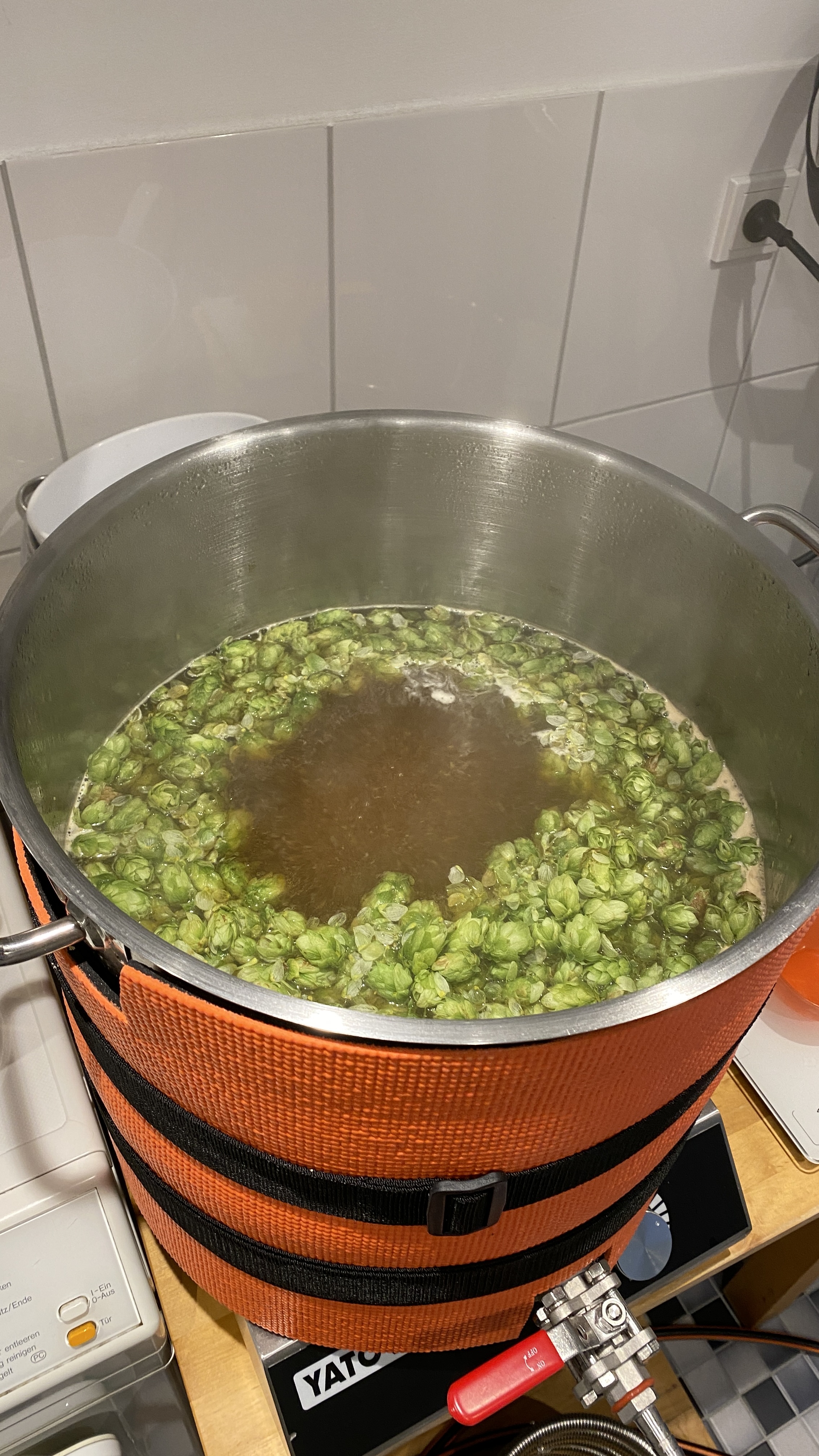 Kochen und Hopfengaben. Sieht klasse aus, ich freue mich!