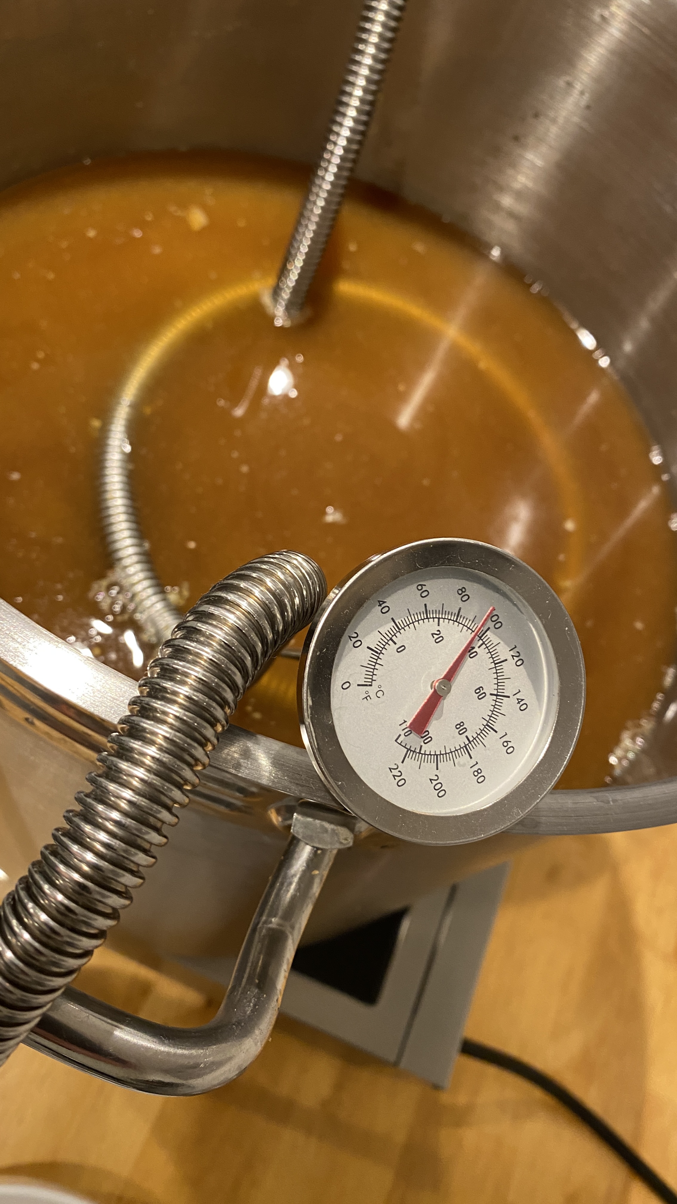Ein Blick von Oben. Der Inkbird übernimmt die Rasten (Heizplatte ist entsprechend heruntergeregelt)