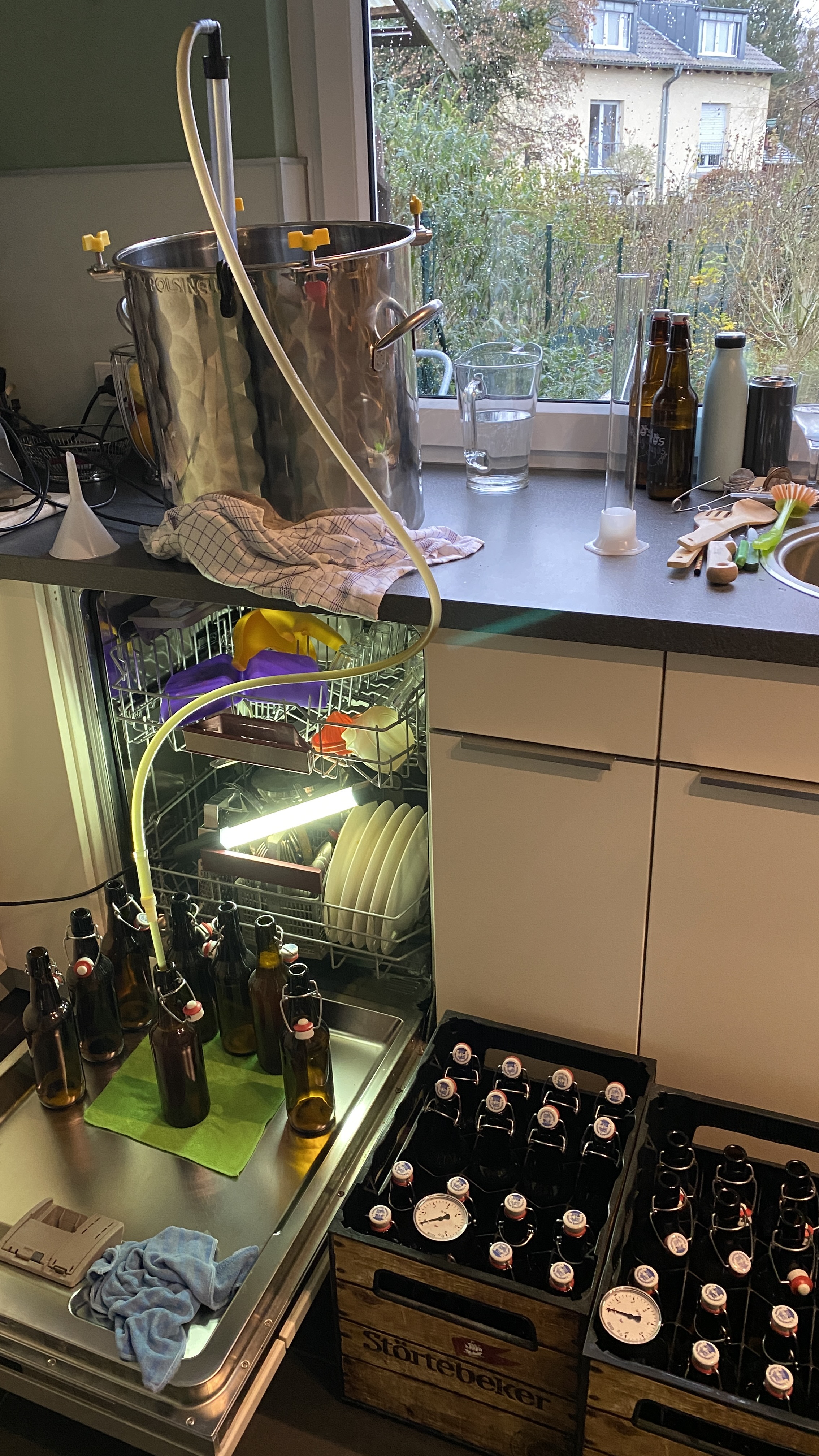 Kühlschlage raus, einmal andrehen, warten und ab in den Gärbehälter.
