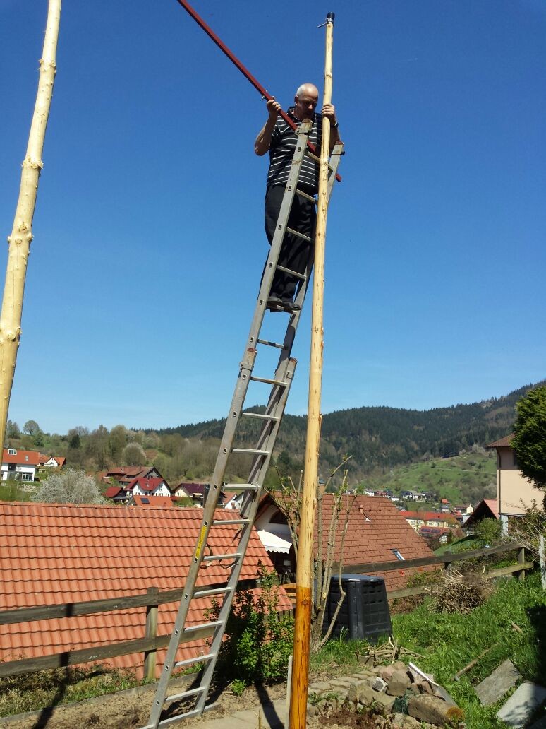 Dieses Wochenende habe ich nun endlich meine Hopfenstangen aufgestellt, das war eine sehr wackelige Angelegenheit da oben auf der Leiter.