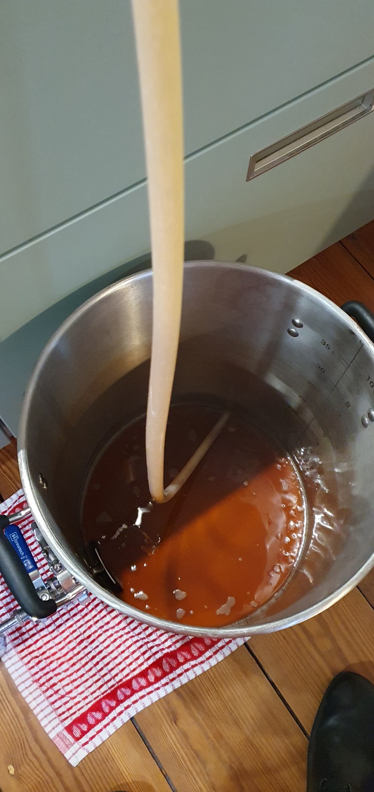Die Anstellwürze schmeckt wunderbar karamellig, hoffentlich hält sich das im finalen Bier.
