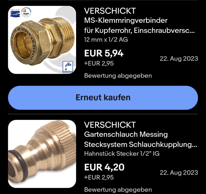 Mache ich genauso seit mehreren Suden, klappt bei mir problemlos. Ich habe allerdings zwei Rohrschellen pro Schlauchstück genommen, doppelt hält besser ;)Alchemist hat geschrieben: Dienstag 19. Dezember 2023, 10:05 Die Zuleitungen zum Wasser sind jetzt so, dass ich ein Stück Gartenschlauch mit Rohrschelle montiert habe, und daran eine Kupplung für Gardena.
